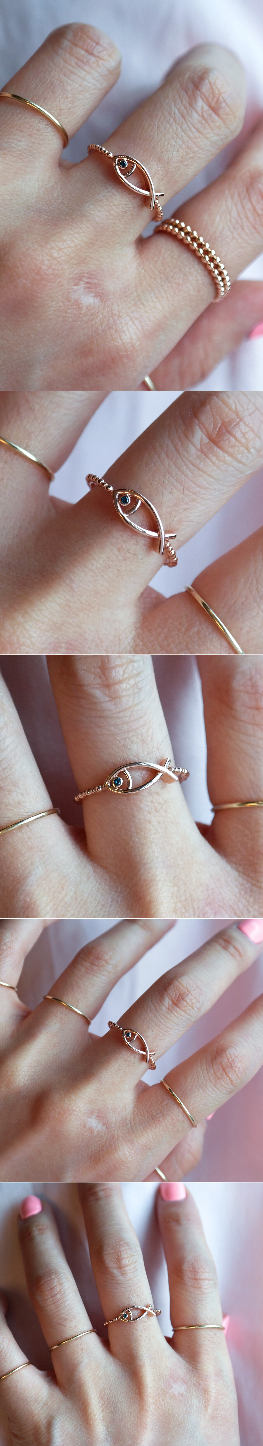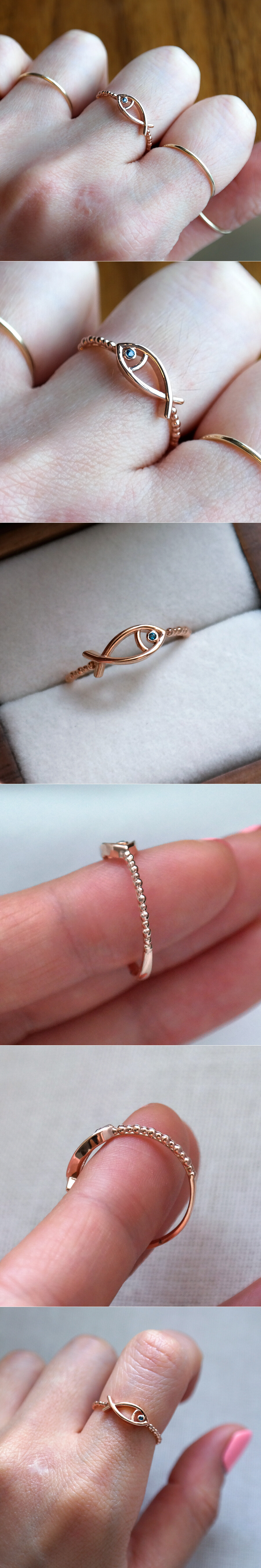 블루 다이아몬드가 세팅된 물고기 장식의 반지입니다. 귀여운 이미지의 데일리 및 포인트 반지를 찾으시는 분들께 추천해 드릴게요. 💙