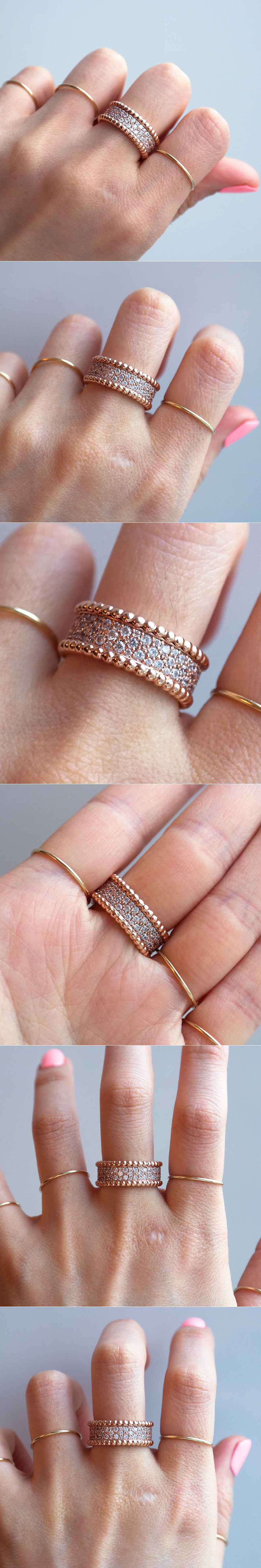 볼 디자인의 이터니티 큐빅 반지입니다. 이터니티 스타일로 약 100여 개의 큐빅이 360도로 촘촘히 세팅된 디자인이에요 :) 중량감이 있어서 안정감 있게 착용하시기 좋구요, 위아래가 볼 디자인으로 둥글게 마감되어 있어 착용 시 그립감도 좋습니다. 깔끔하면서 고급스러운 디자인으로 데일리 및 포인트 반지로 추천해 드릴게요. 💙