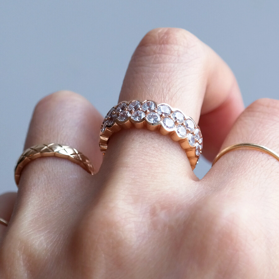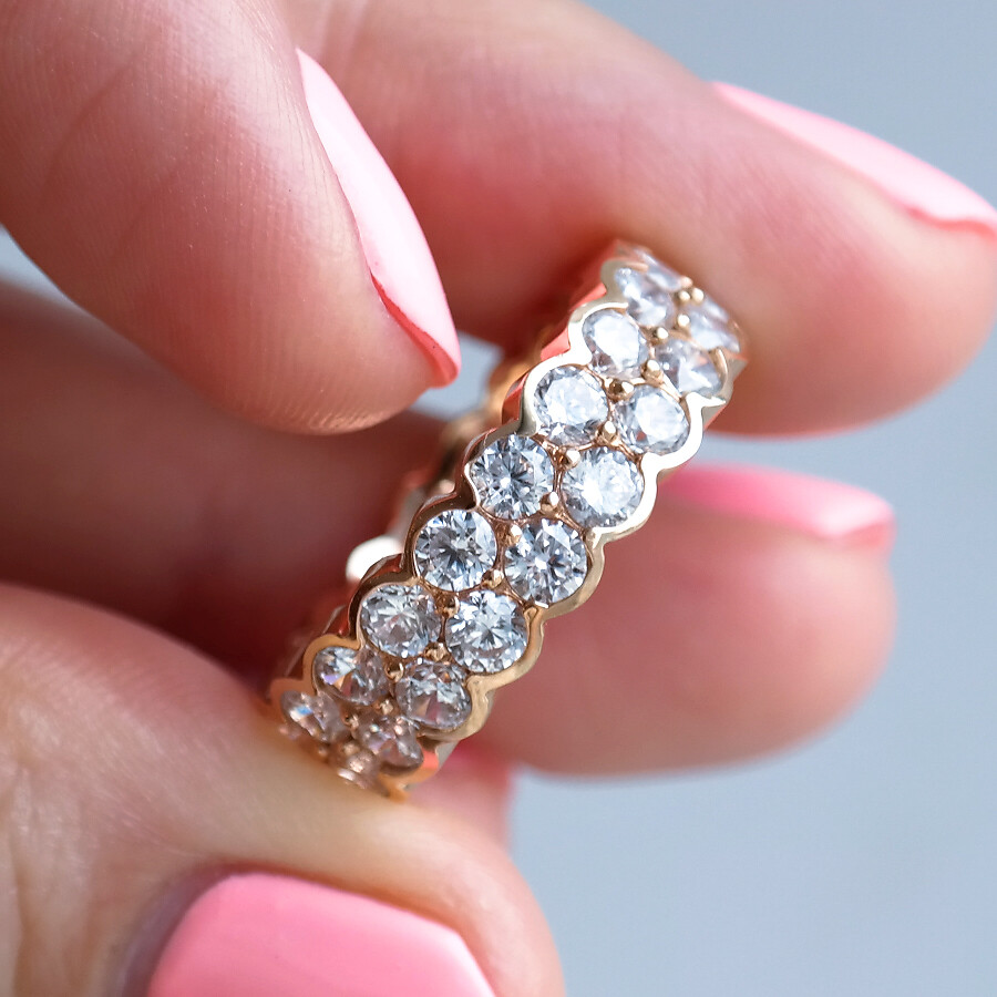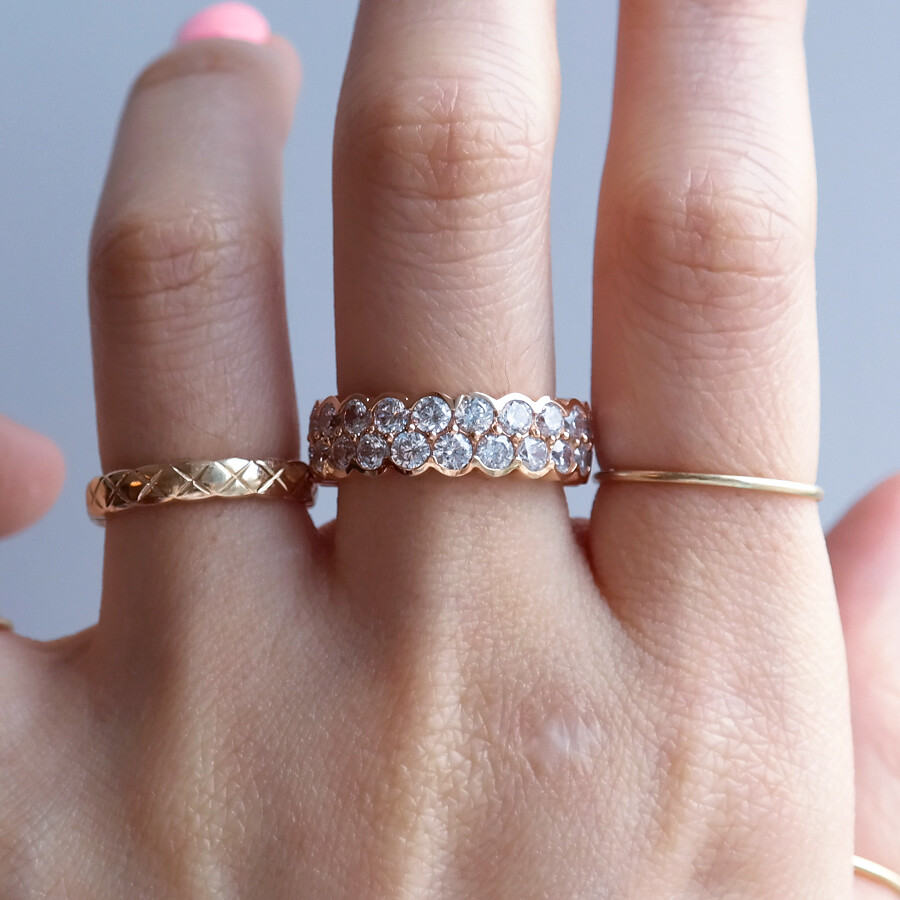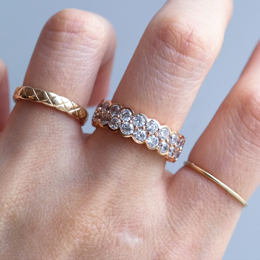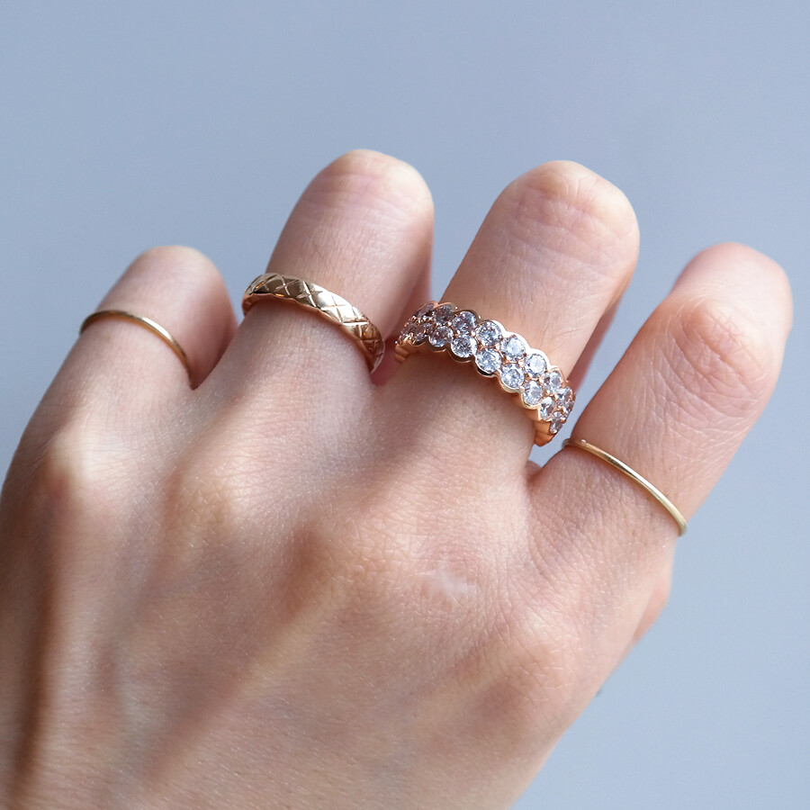 고급스러운 디자인의 중량감 있는 큐빅 반지입니다. 약 1부 사이즈의 큐빅이 2단으로 들어간 디자인이구요, 우대 있는 디자인입니다. 단단하고 볼드한 형태로 안정감 있게 착용하시기 좋아요. 원래는 다이아몬드 라인으로만 나왔던 프리미엄 라인의 예물 반지인데 문의가 많아서 큐빅 버전으로 업데이트해서 올려보았어요 :) 고급스러운 디자인의 데일리 및 포인트 반지로 추천해 드립니다! * 다이아몬드 및 탄생석 세팅도 가능하니 상담을 원하시는 분은 네이버 톡톡 채팅으로 문의주세요. 💖