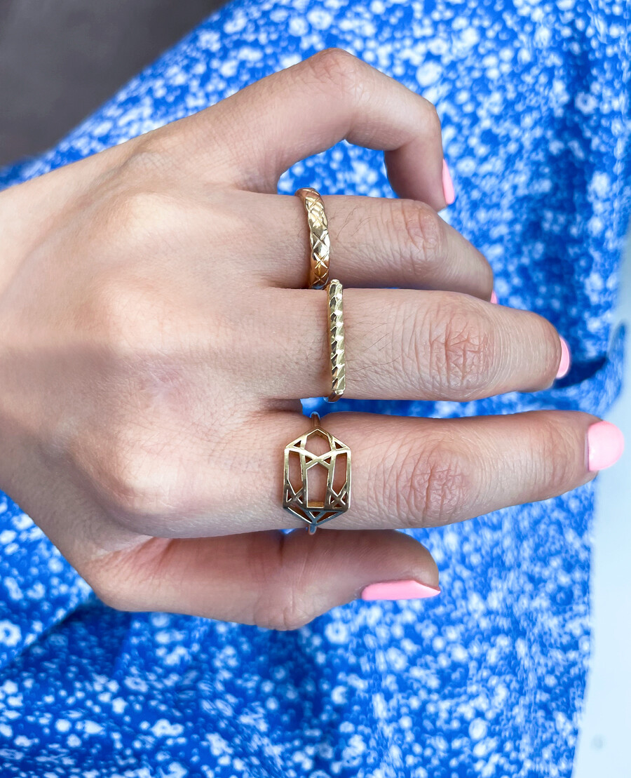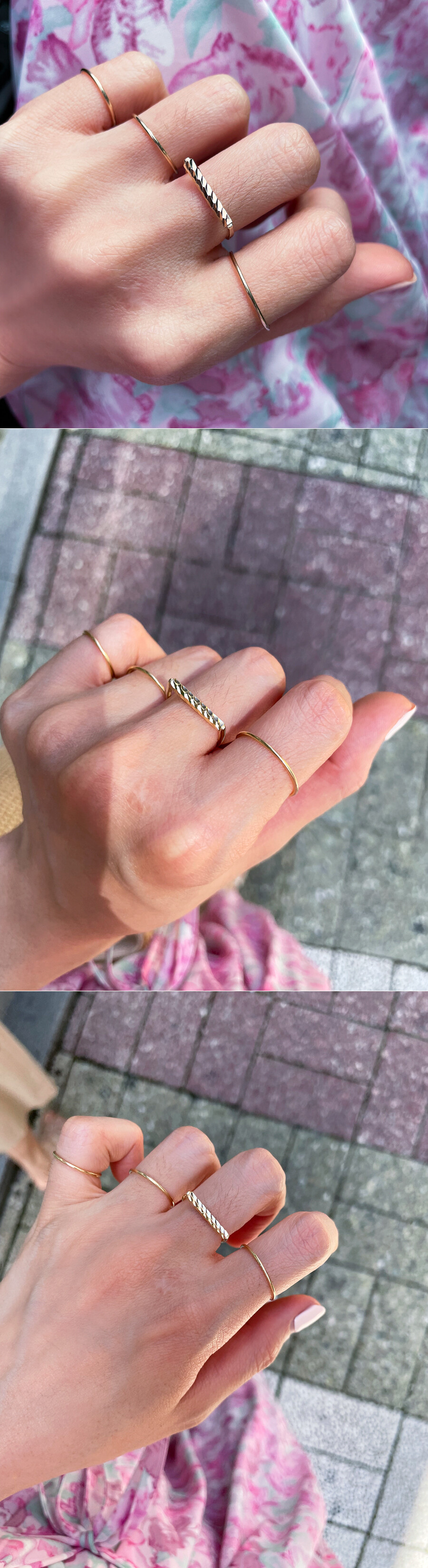 파이프 스틱 스타일의 민자 반지입니다. 다이아몬드 컷팅이 들어가 있어 심플하면서도 세련된 느낌으로 포인트 반지 및 데일리 반지로 착용하시기 좋아요 :)