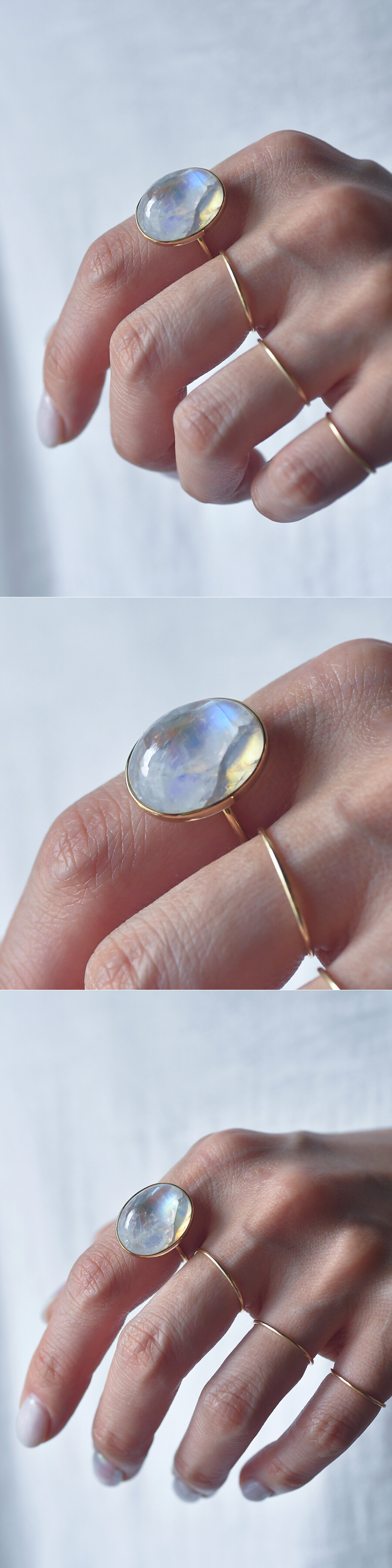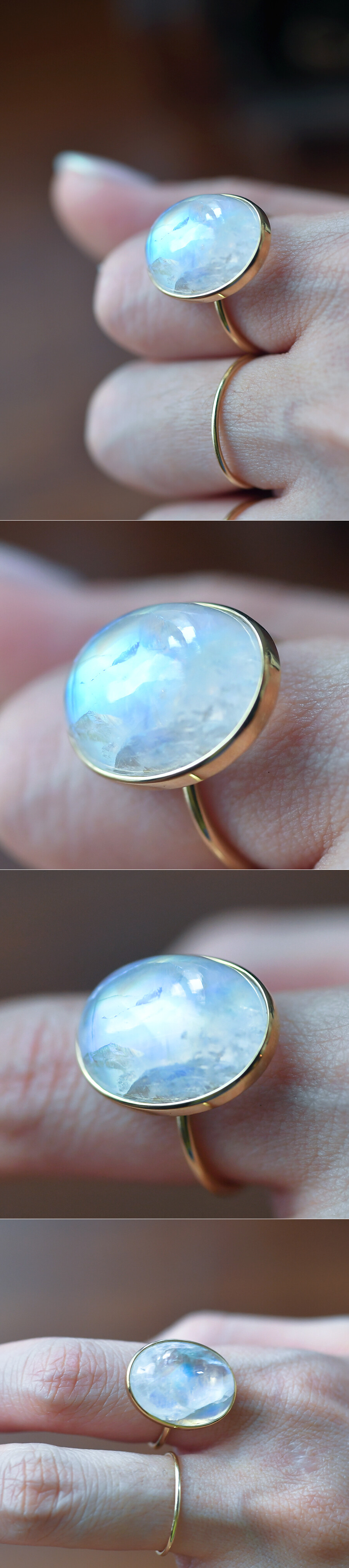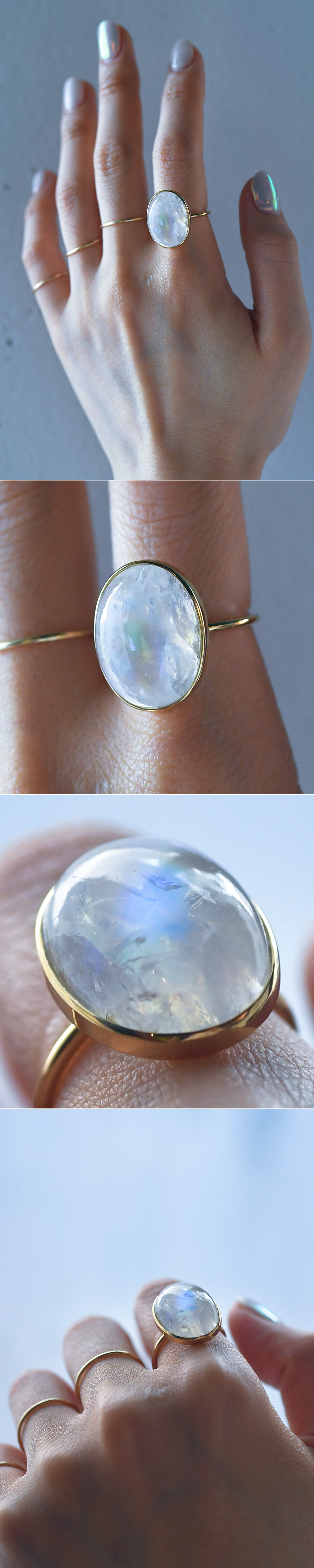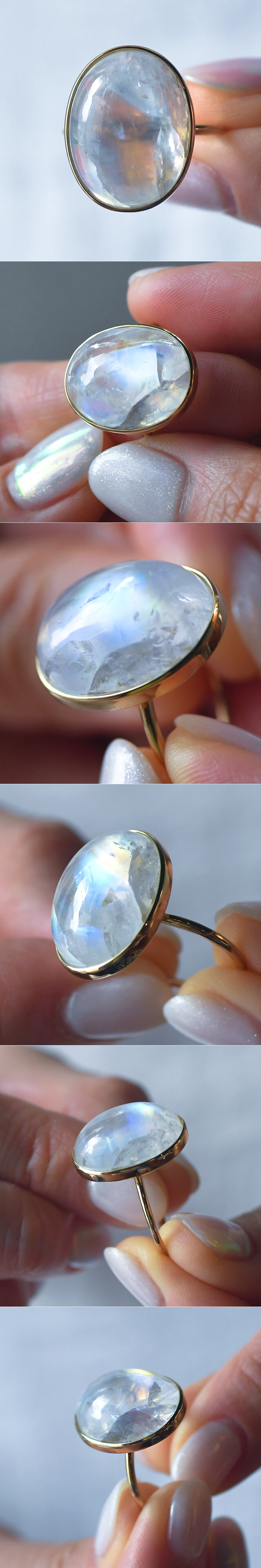 14K 14X18 인도산 레인보우 문스톤 오벌 캐보션 반지
