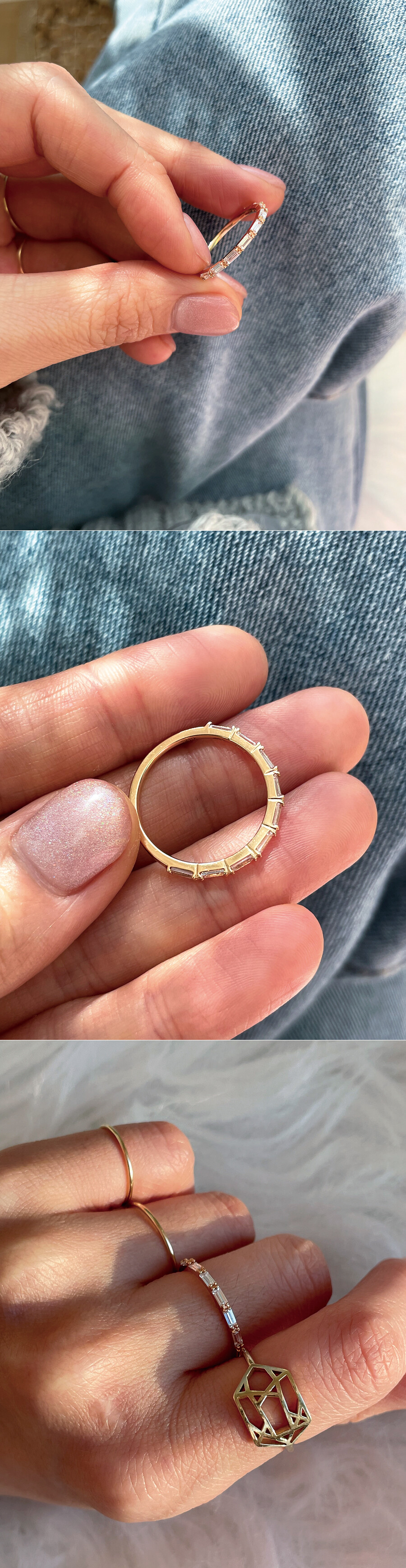 바게트 큐빅이 일렬로 세팅된 디자인의 가드링 반지입니다. 깔끔하고 세련된 디자인으로 레이어드 및 가드링 반지로 활용하시기 좋아요. 🩷