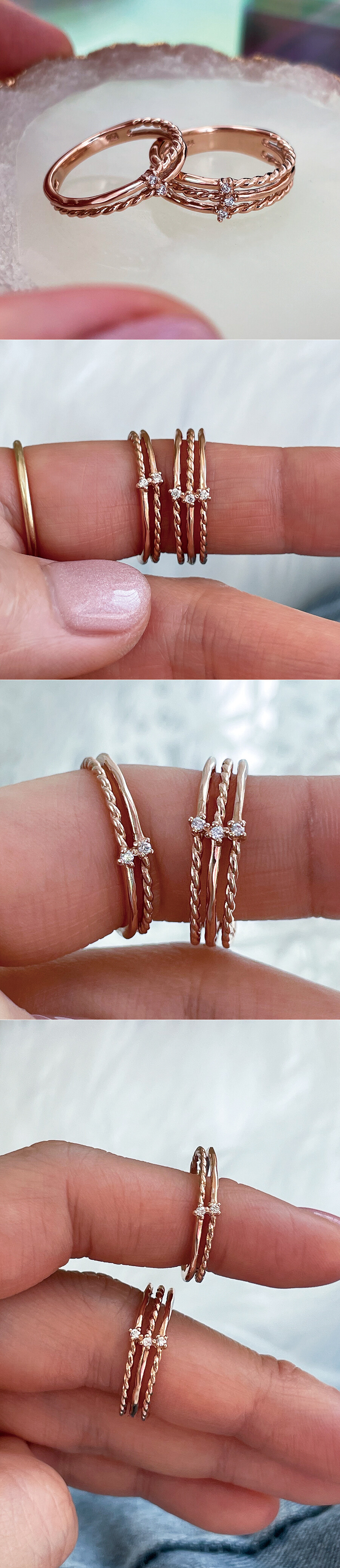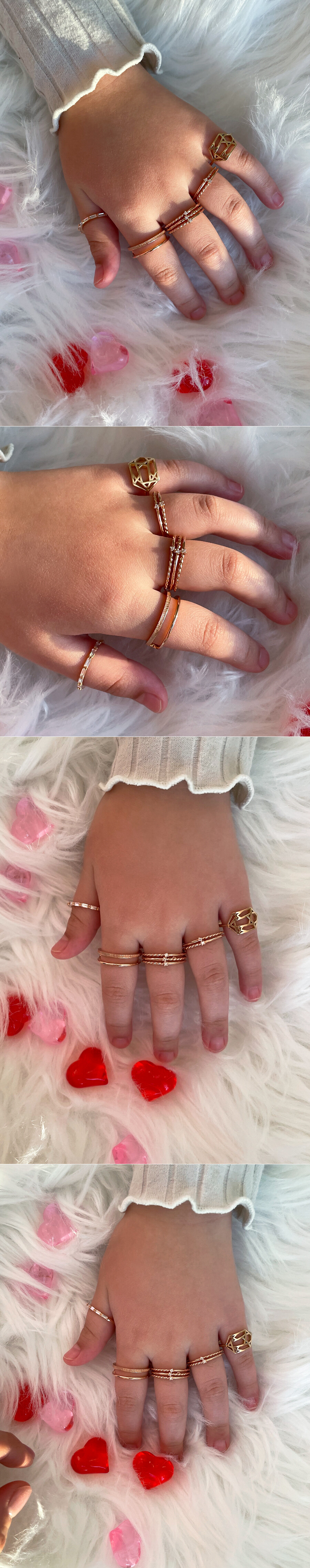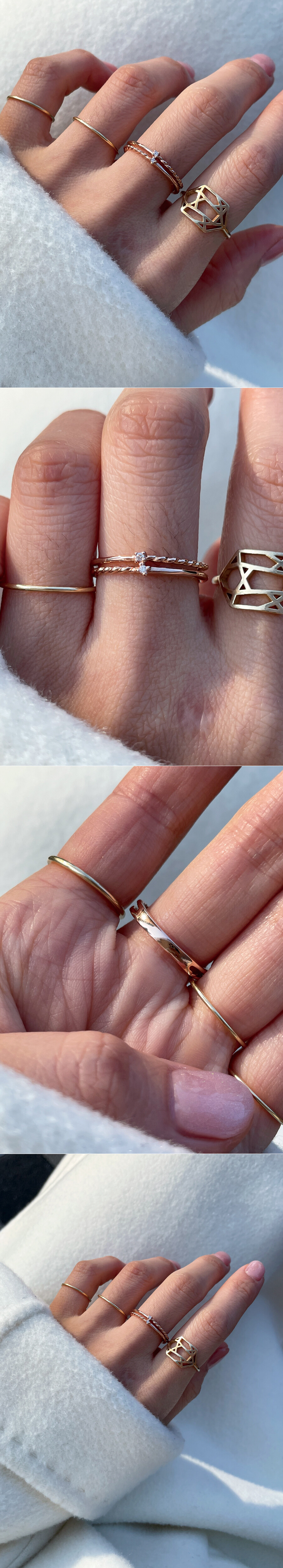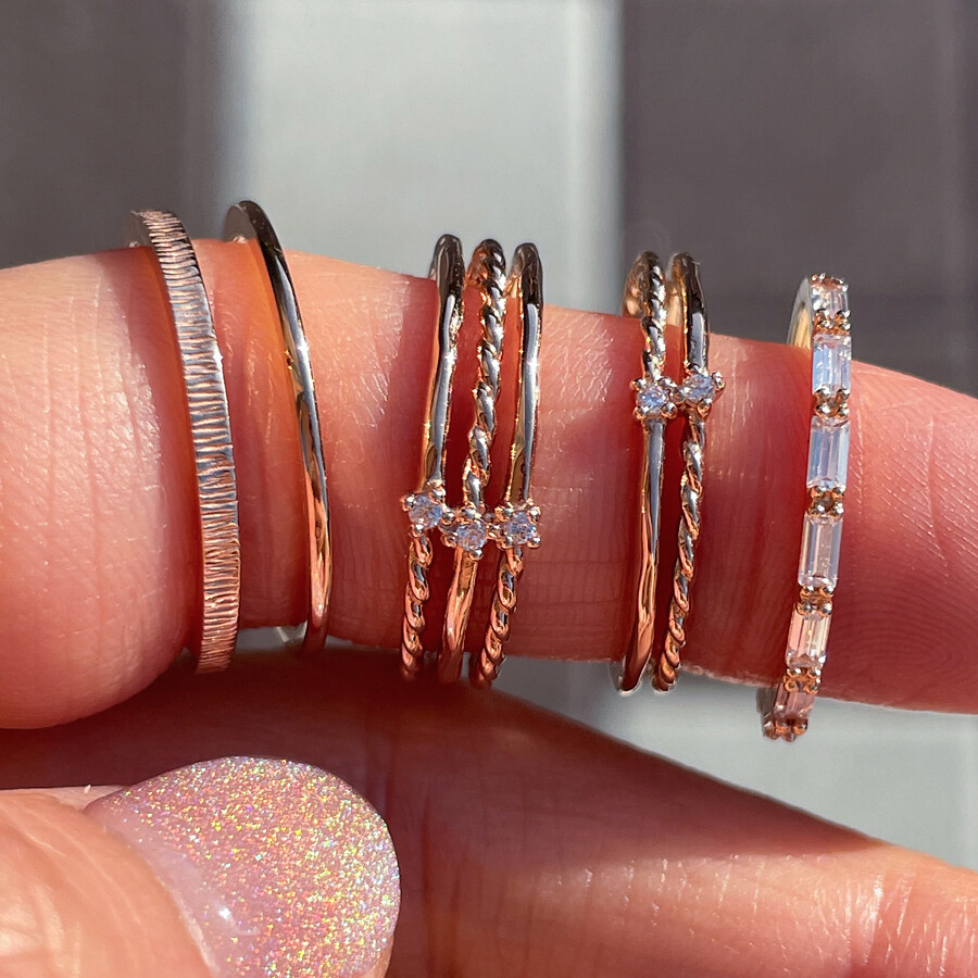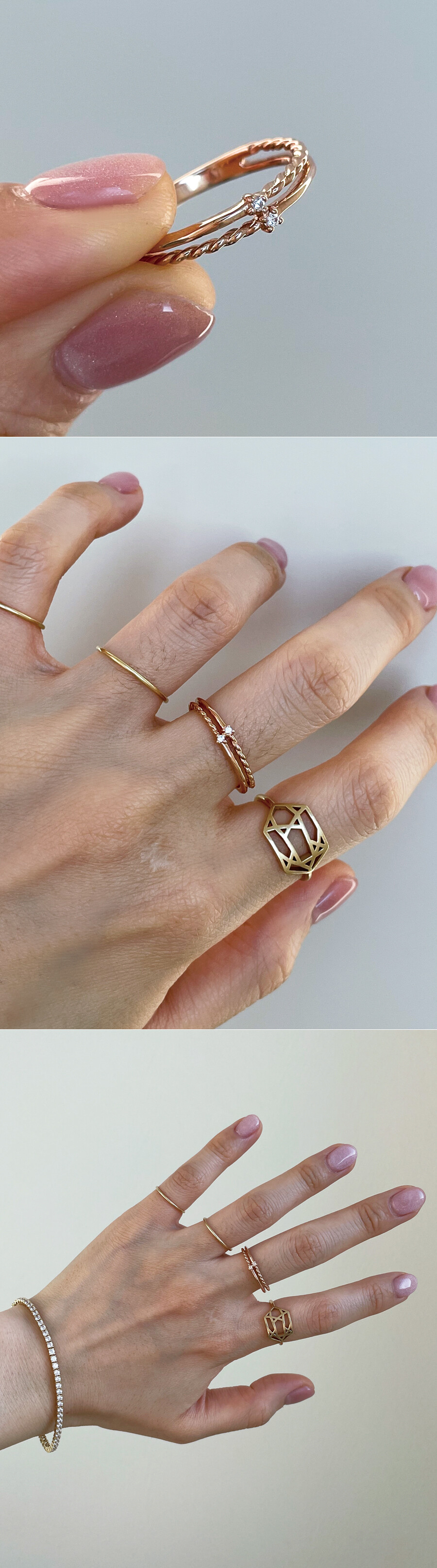 유니크한 밴딩 디자인의 두 줄 반지입니다. 중앙에 불규칙한 느낌으로 예쁘게 세팅된 큐빅들이 마치 별처럼 보이기도 하구요, 전체적으로 유니크한 느낌으로 착용하시면 너무 예쁘답니다! ^^ ⭐️🌟✨ 같은 디자인으로 한 줄 반지와 세 줄 반지도 있으니 궁금하신 분들은 몰 내에서 '별동별' 로 검색해서 확인해 주세요. 포인트 및 데일리 반지로 추천해 드릴게요. 🤩💍