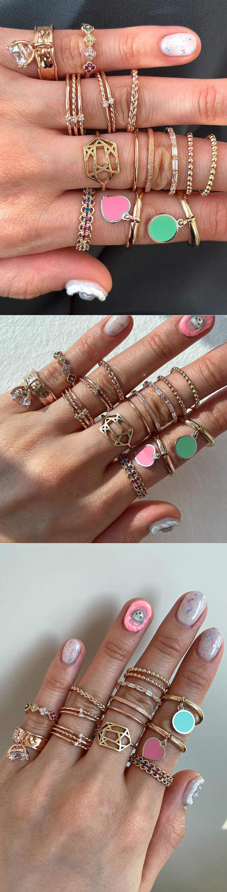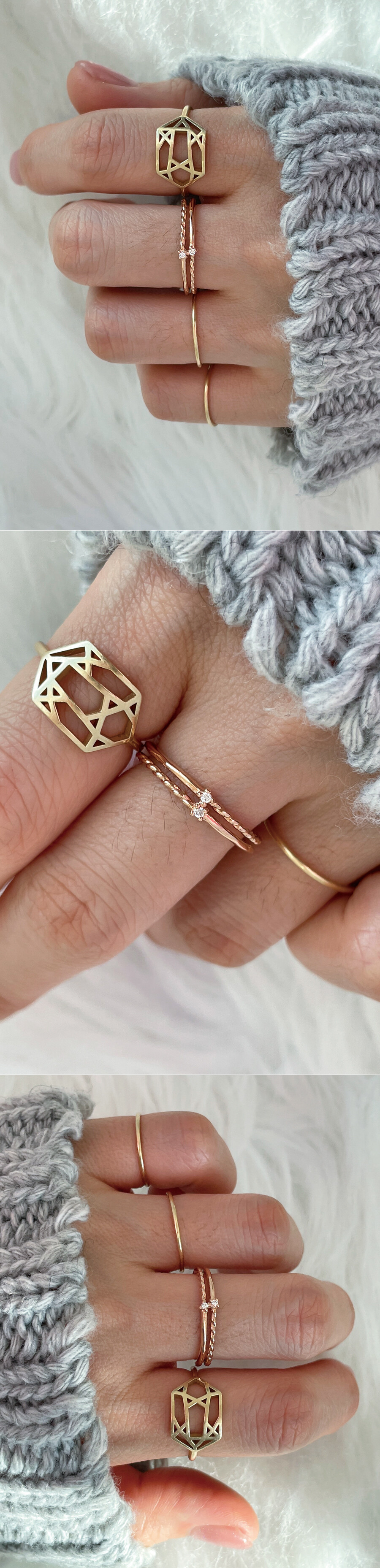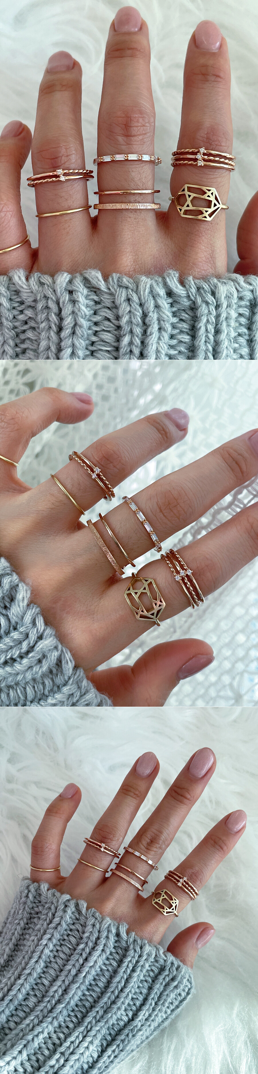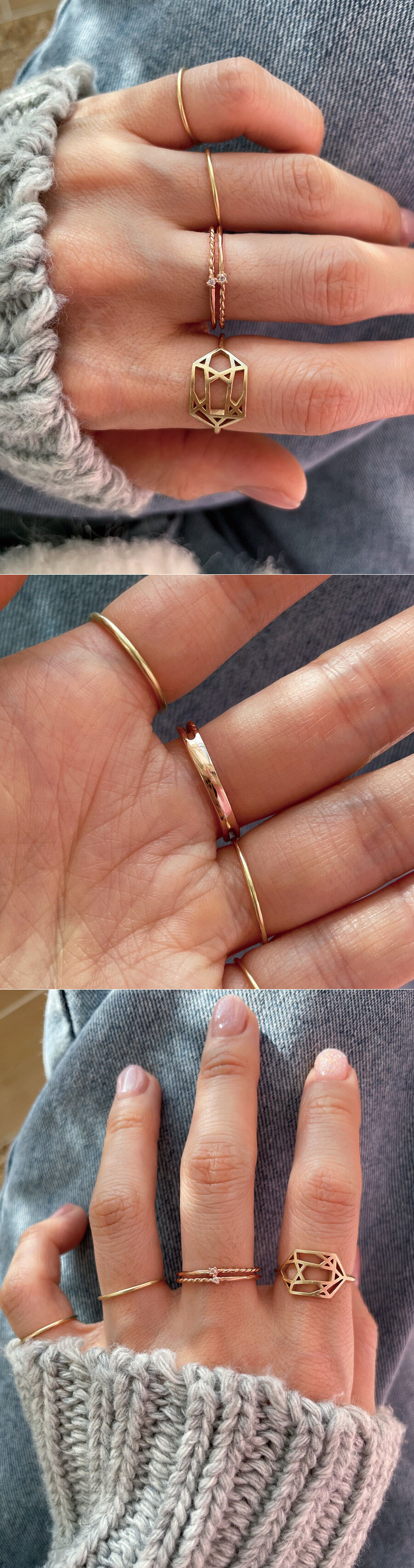 유니크한 밴딩 디자인의 두 줄 반지입니다. 중앙에 불규칙한 느낌으로 예쁘게 세팅된 큐빅들이 마치 별처럼 보이기도 하구요, 전체적으로 유니크한 느낌으로 착용하시면 너무 예쁘답니다! ^^ ⭐️🌟✨ 같은 디자인으로 한 줄 반지와 세 줄 반지도 있으니 궁금하신 분들은 몰 내에서 '별동별' 로 검색해서 확인해 주세요. 포인트 및 데일리 반지로 추천해 드릴게요. 🤩💍