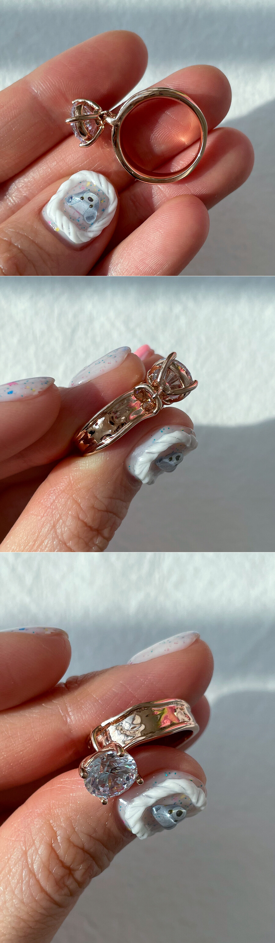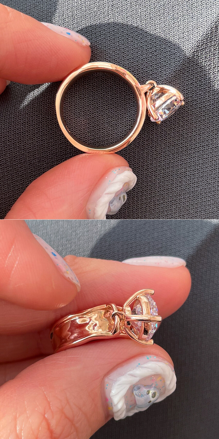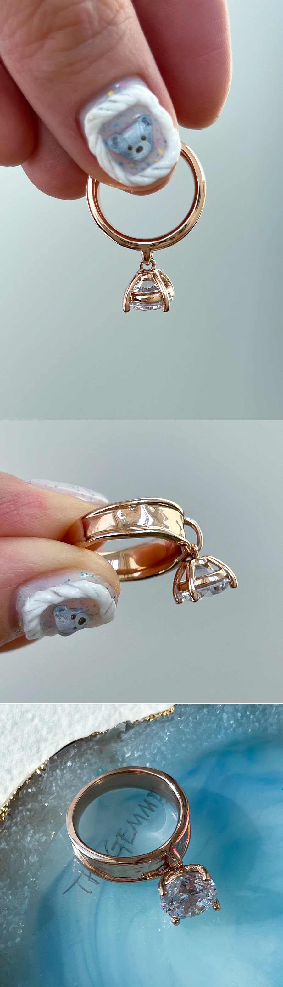약 8mm 사이즈의 큐빅 딸랑이 팬던트가 달린 반지입니다. 중량감이 다소 나가는 제품으로 볼드한 아이로 일렁일렁 거리는 듯한 유니크한 밴딩 마감 디자인으로 고급스러워 보이는 느낌이 있어서 레이어드 및 포인트 반지로도 활용하시기 좋답니다. 특이한 디자인의 반지를 찾으시는 분들께 추천해 드릴게요! 🥰