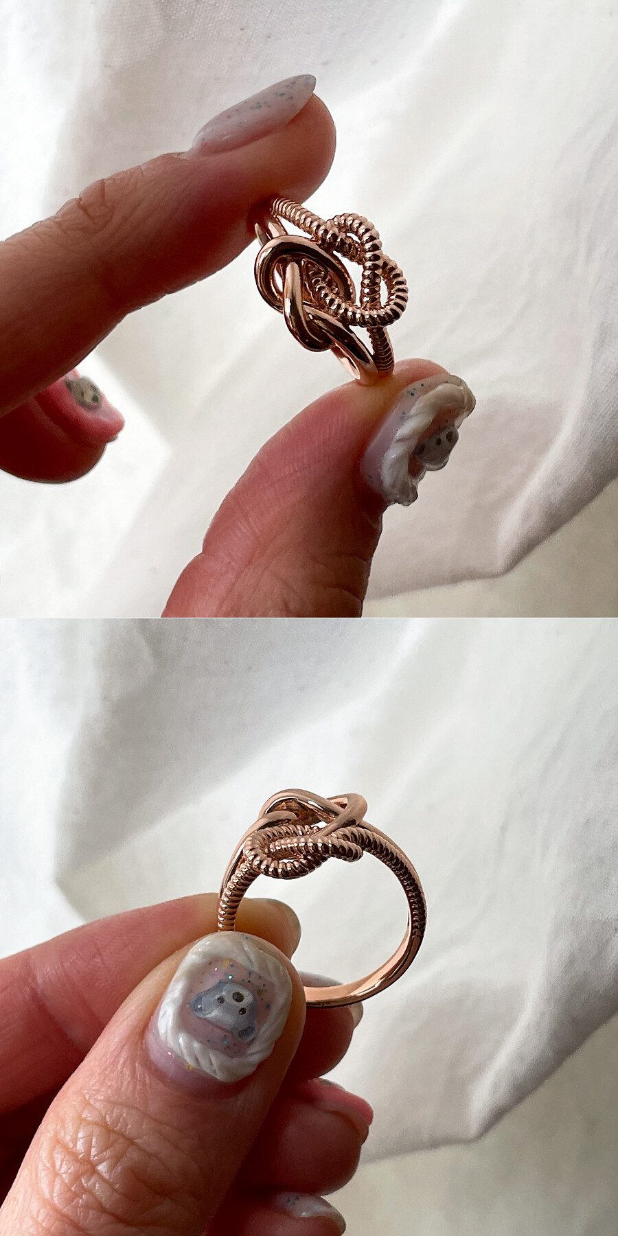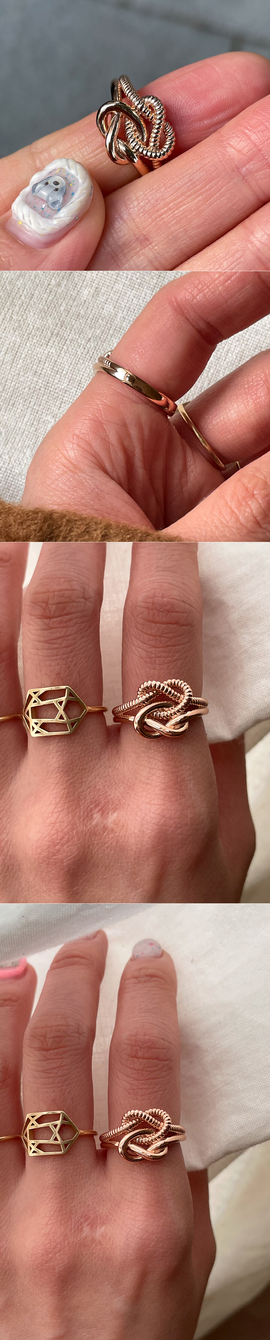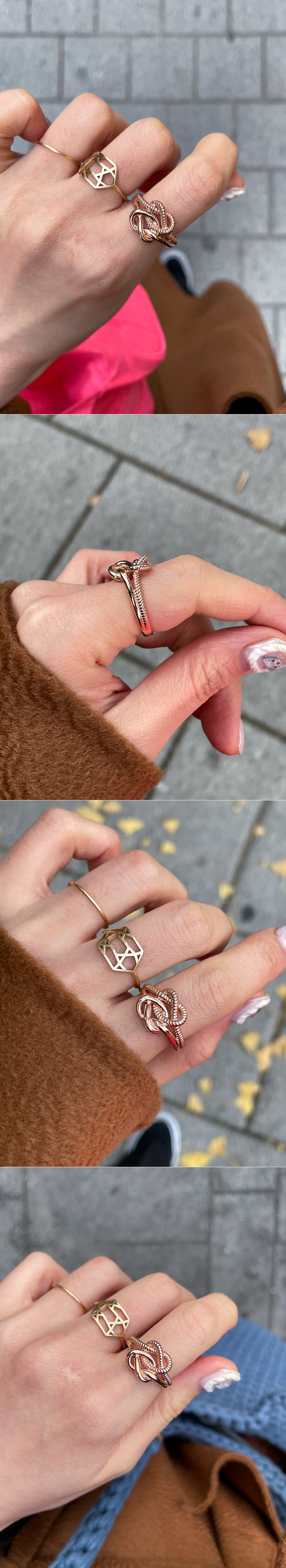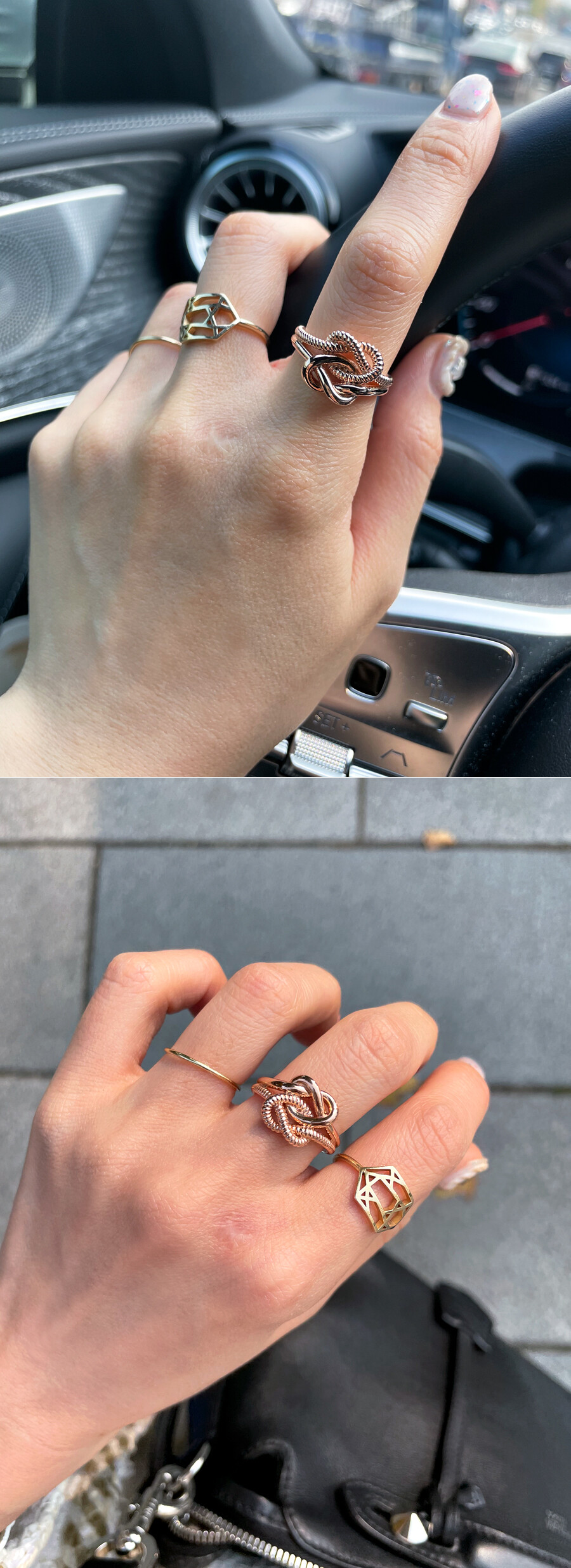 프레즐 모양으로 예쁘게 꼬아진 꼬임 디자인의 매듭 반지입니다. ♥ 언발란스한 느낌으로 로프 디자인과 민자 디자인이 함께 꼬아진 아이구요, 중량감이 다소 나가는 볼스한 스타일의 반지랍니다. 고급스럽고 세련된 스타일의 반지로 착용시 그립감도 너무 좋아요! 포인트 및 데일리 반지로 강력 추천해드릴게요. 🤩💍