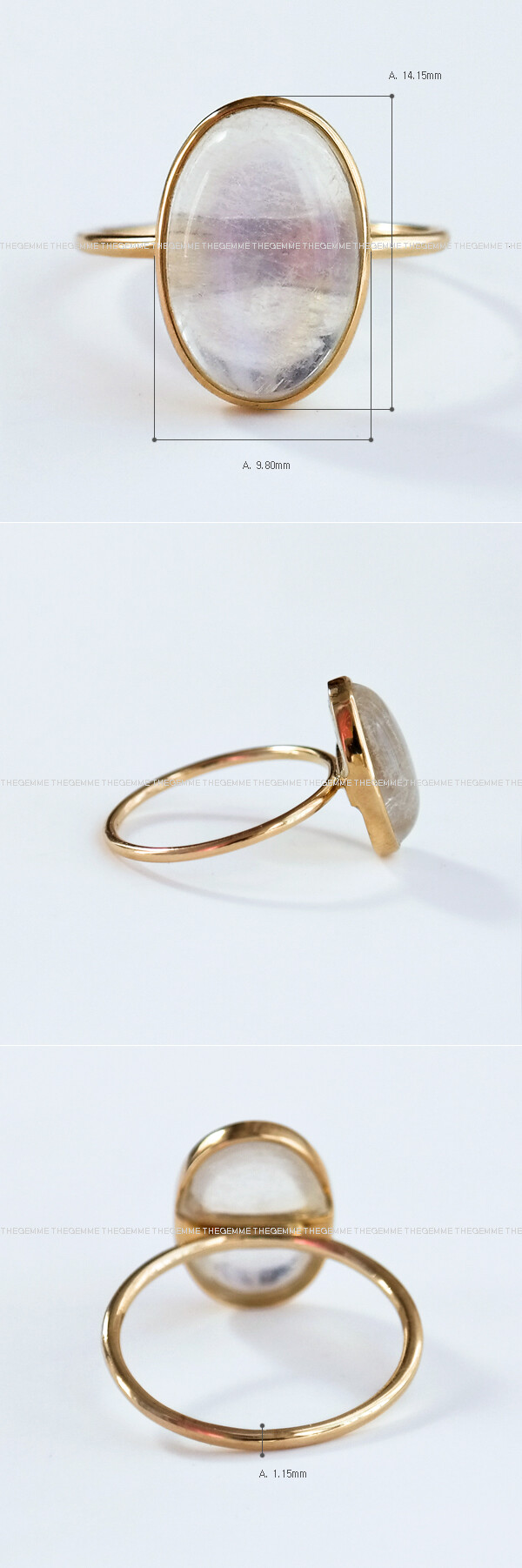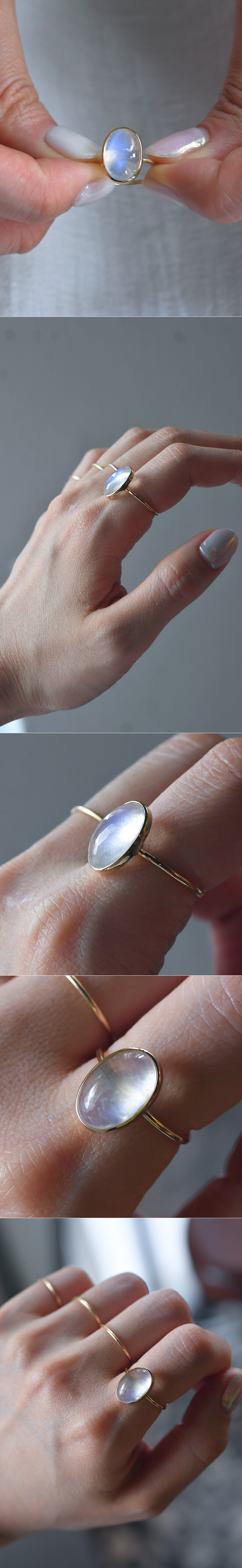 14K 9X13 마다가스카르산 문스톤 오벌 캐보션 반지