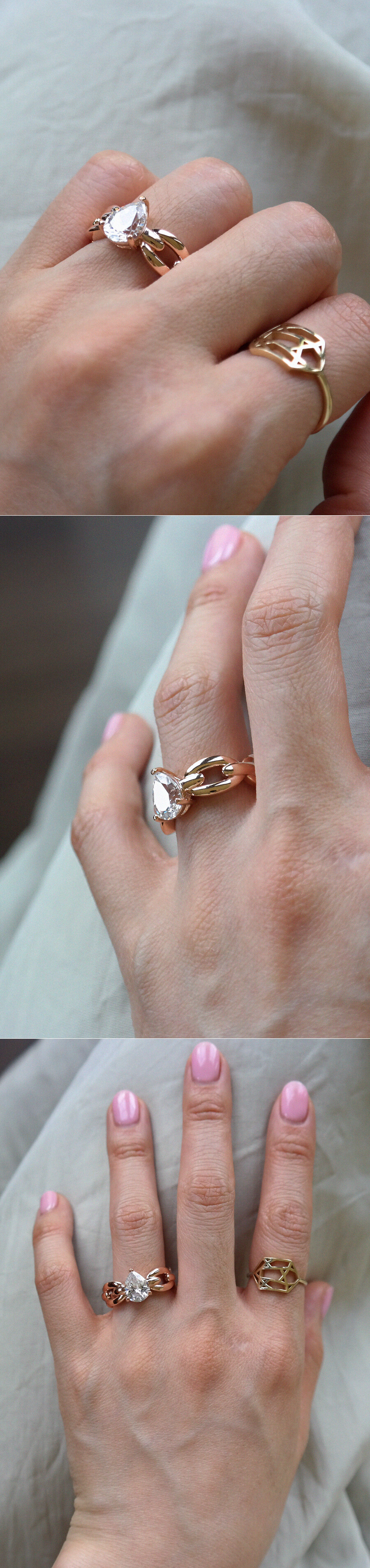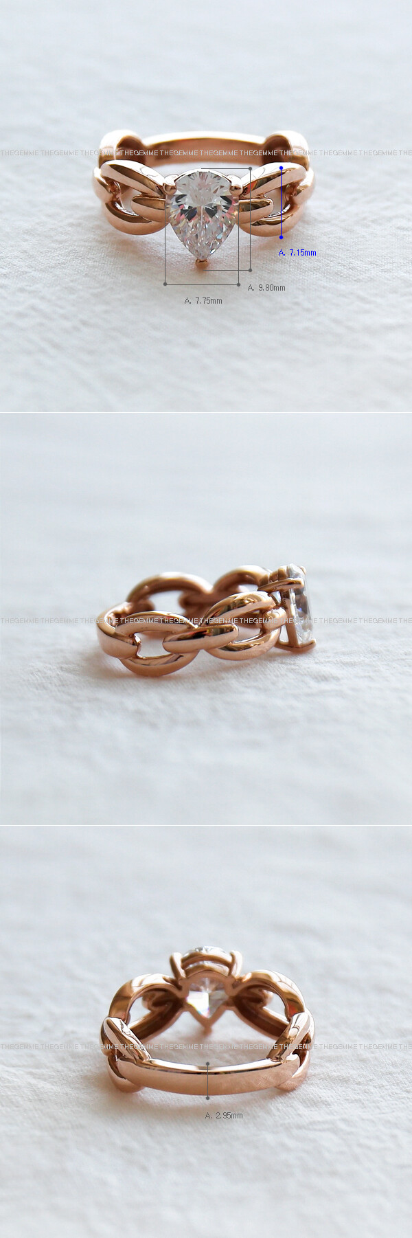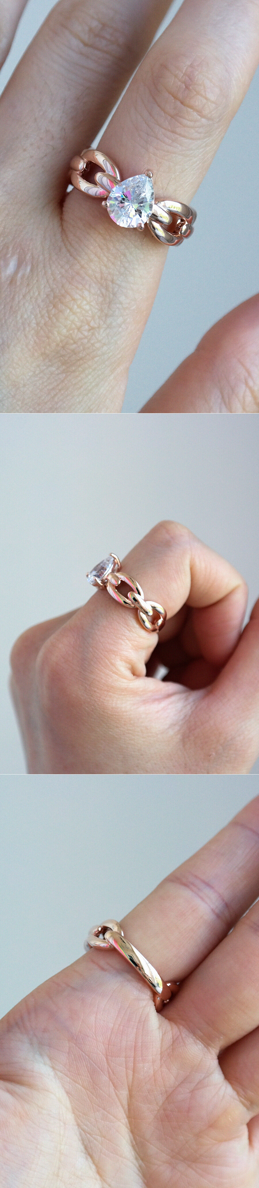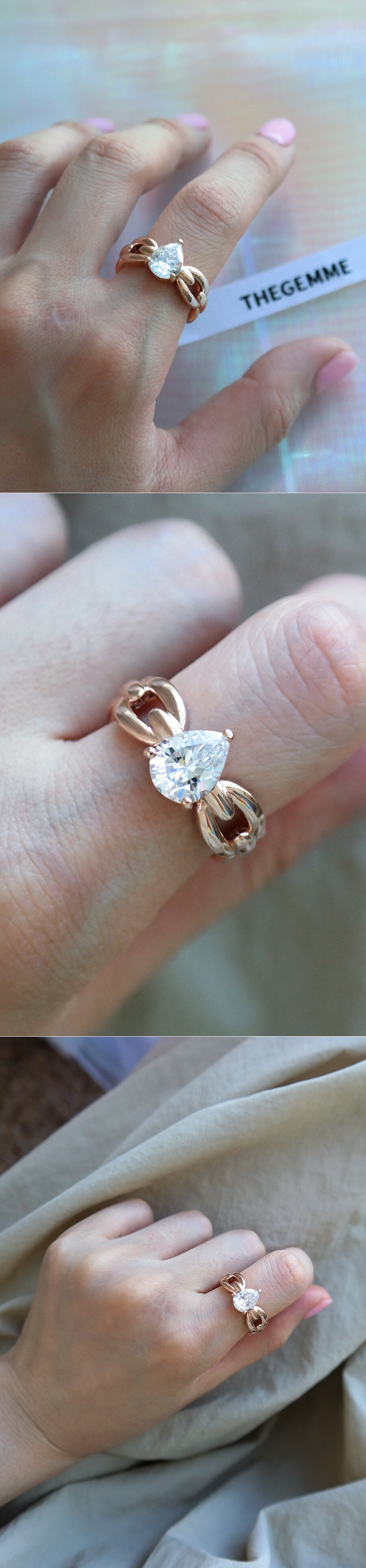 여자라면 누구라도 좋아할만한 ... 우아한 세련미가 돋보이는 물방울 모양의 페어컷 큐빅이 세팅된 반지입니다. 한눈에 들어오는 고급스러운 느낌의 반지로 메인 스톤은 약 7X9 사이즈의 큐빅이 세팅되었어요. 동글진 체인 스타일로 측면에서도 볼륨감이 풍부해 보이는 아이랍니다. 여성스럽고 고급스러운 데일리 및 포인트 반지를 찾으시는 분들에게 추천해 드릴게요. 💜