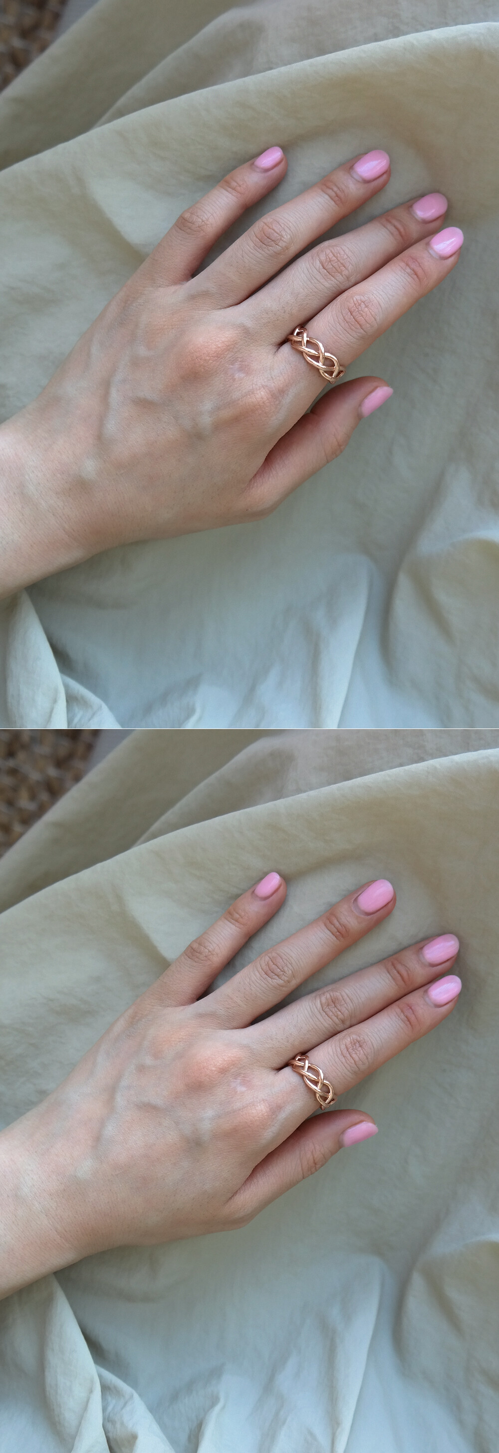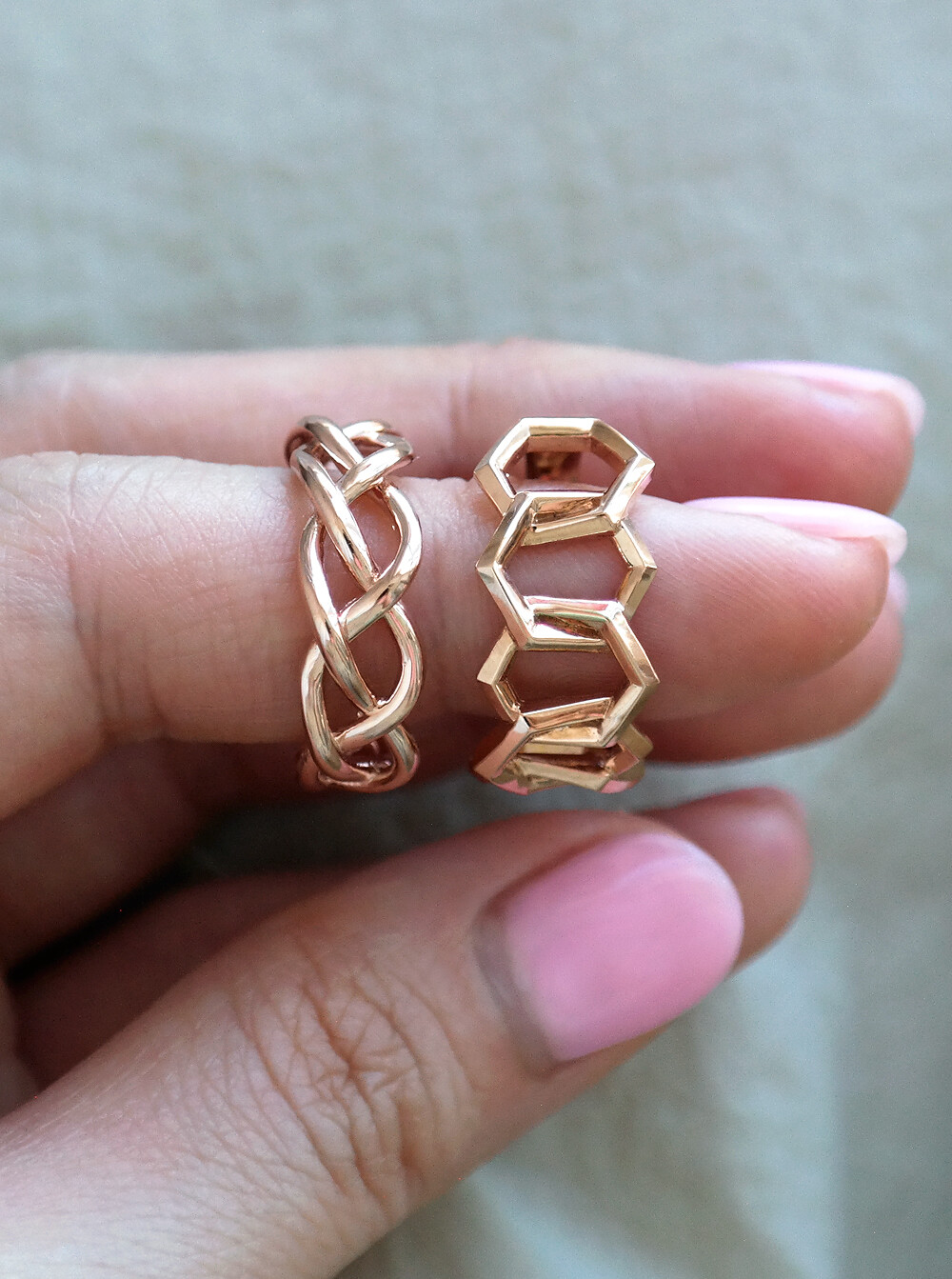 꽉 채워진 파이프 선으로 꼬아진 웨이브 형태의 꼬임 반지입니다. 중량감이 있어서 안정감 있는 데일리 반지로 착용하시기 좋아요. 🙂💛