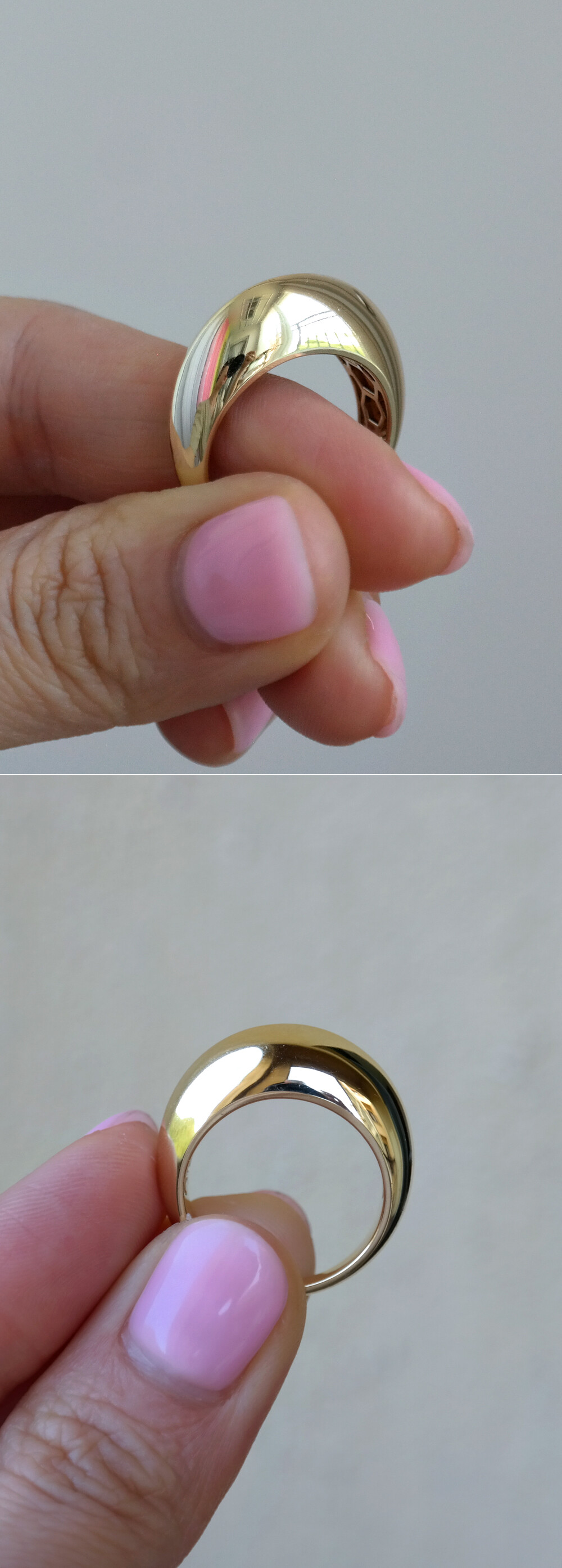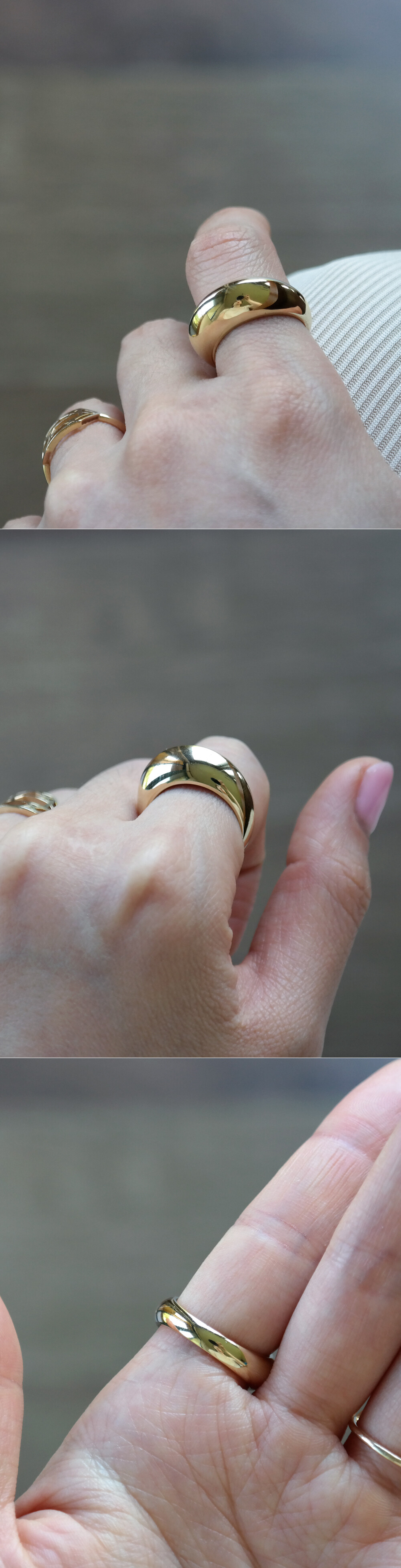 중량감이 있는 볼드한 디자인의 볼륨 반지입니다. 🙂 반지의 고가 높은 스타일로 중앙에 산처럼 올라온 각진 라인이 있어서 세련된 느낌이 있습니다! 자세한 디테일은 이미지에서 확인해 주시구요, 존재감 확실한 포인트 반지 또는 데일리 반지로 추천해 드릴게요. 💛