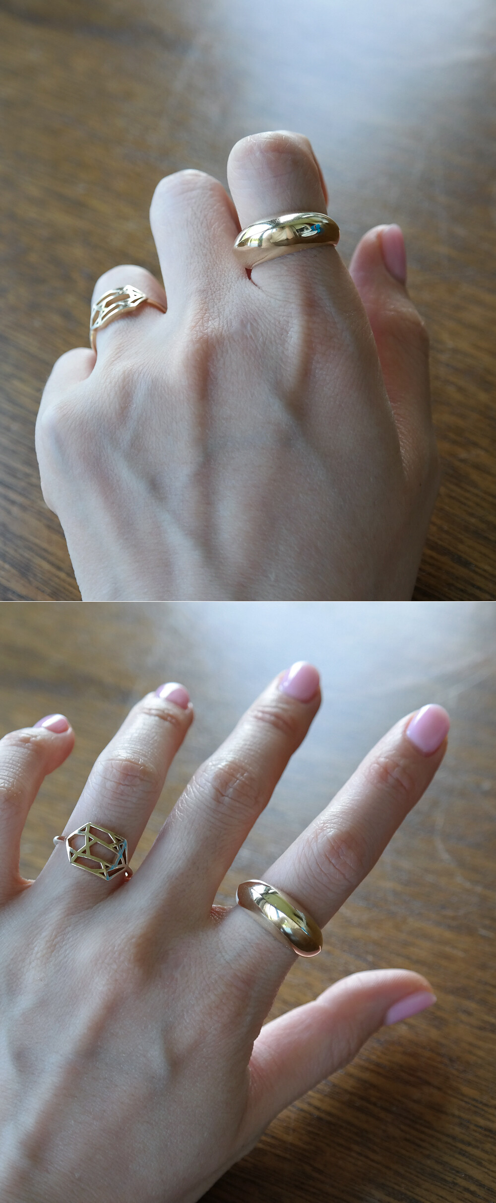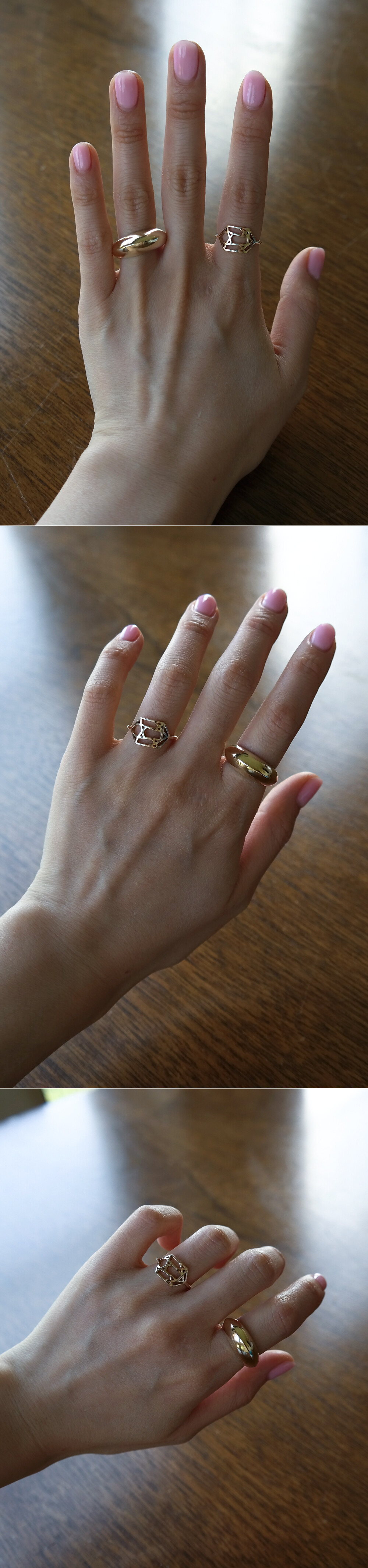 ▼ 반지를 착용하고 손가락을 붙였을 때 측면의 볼륨감으로 인하여 손가락 사이가 완전히 붙지 않아요. 이 부분 체크해 주세요!