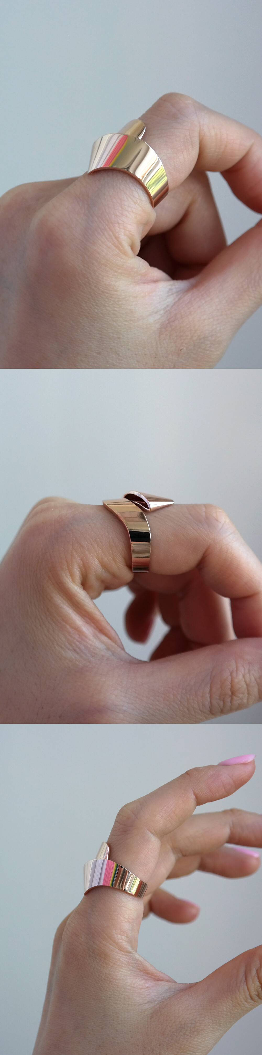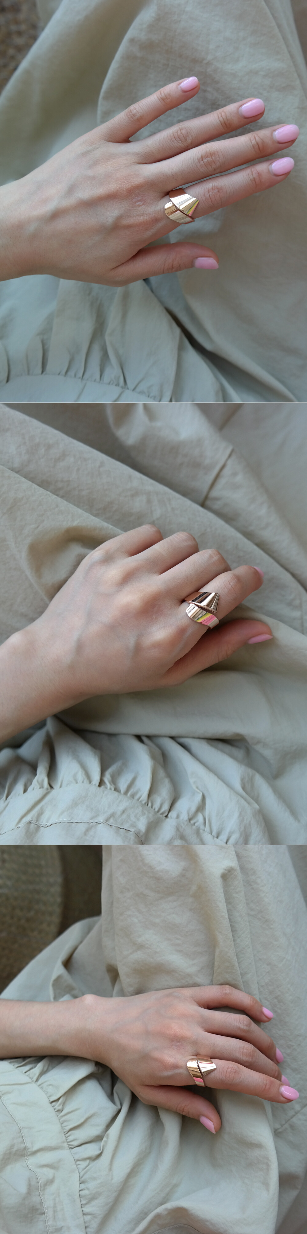 고깔 모양의 유니크한 디자인을 가진 민자 스타일 반지에요. 세련된 마름모꼴 스타일로 넓은 밴딩 모양을 갖추고 있어서 멋스러운 골드 포인트를 주는 아이랍니다. 💍✨ 독특한 디자인을 좋아하시는 분들께 적극 추천해 드릴게요! 😍💋👍🏼