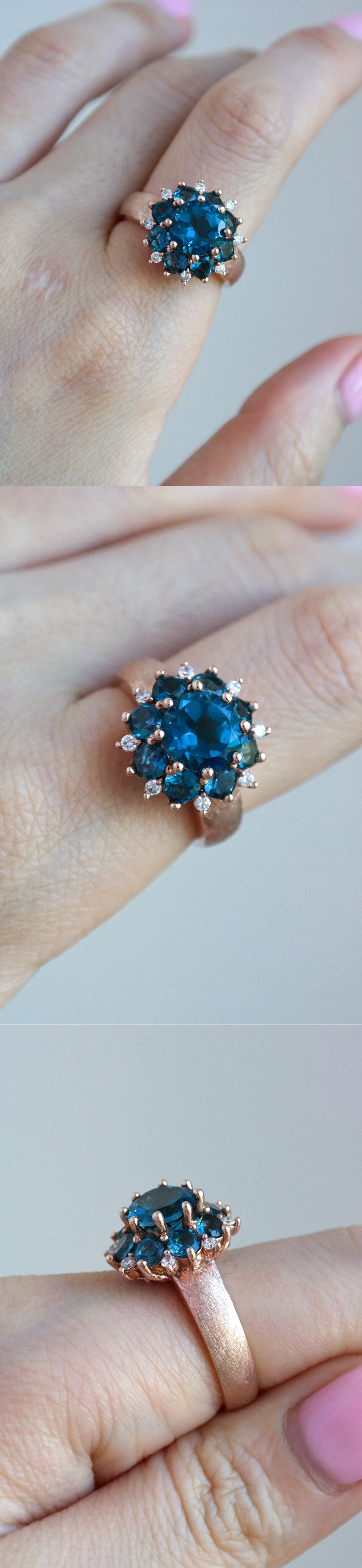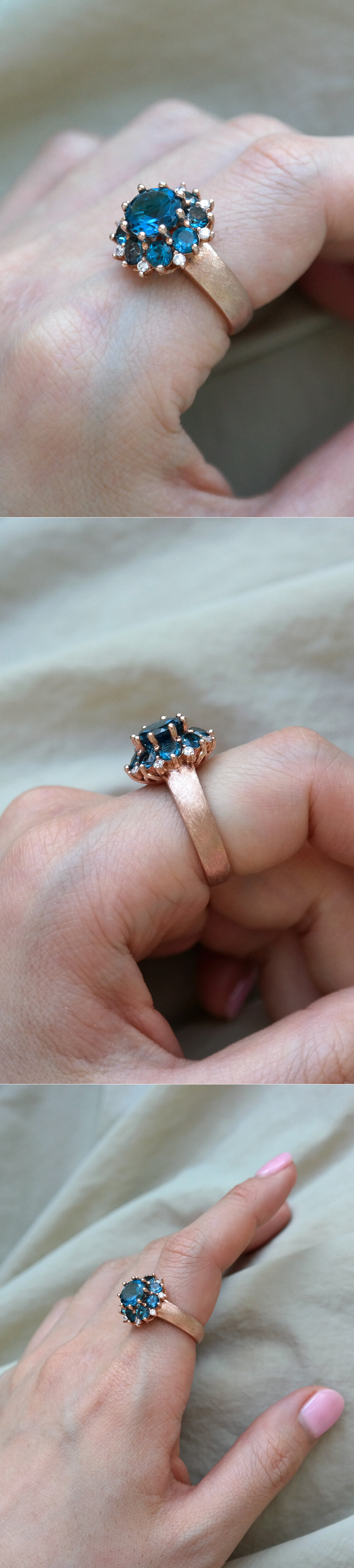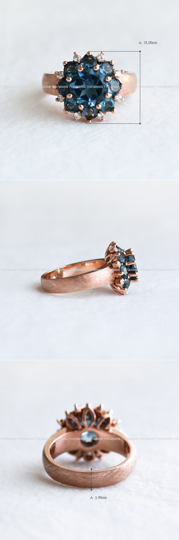 컬리 플라워 런던블루 토파즈 & 큐빅 반지