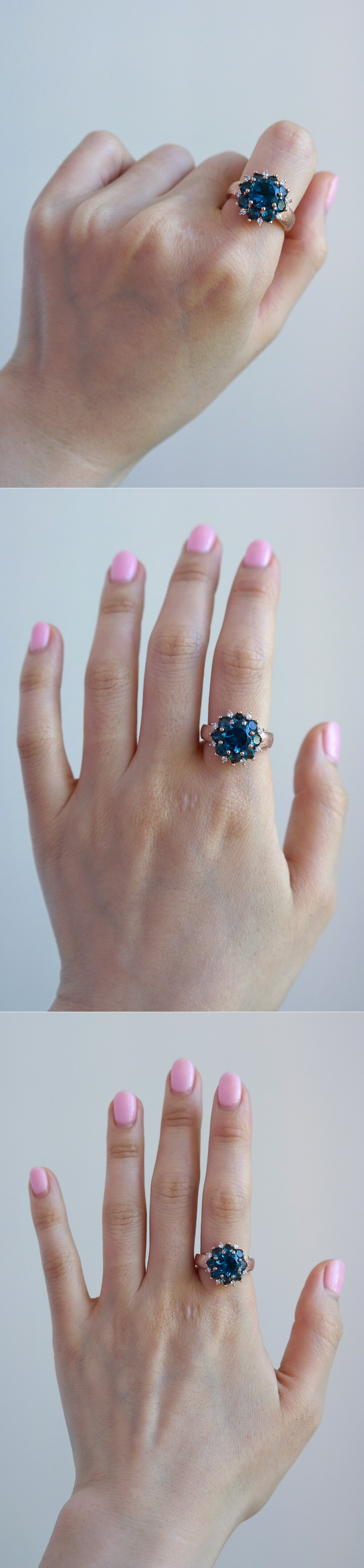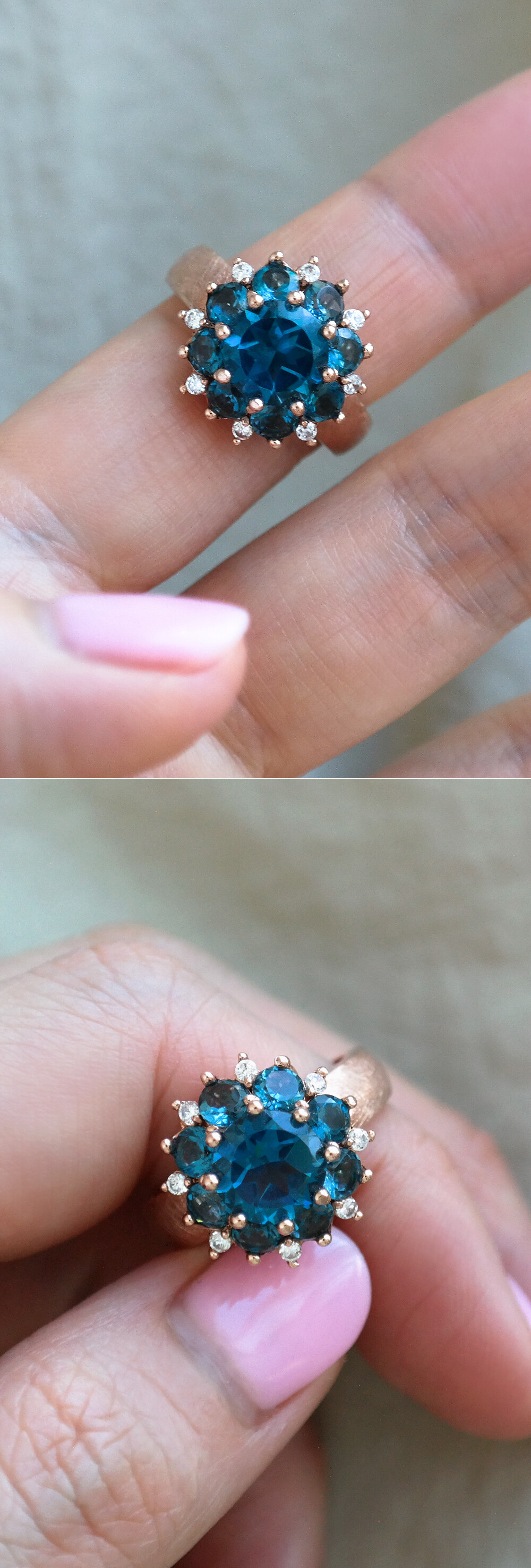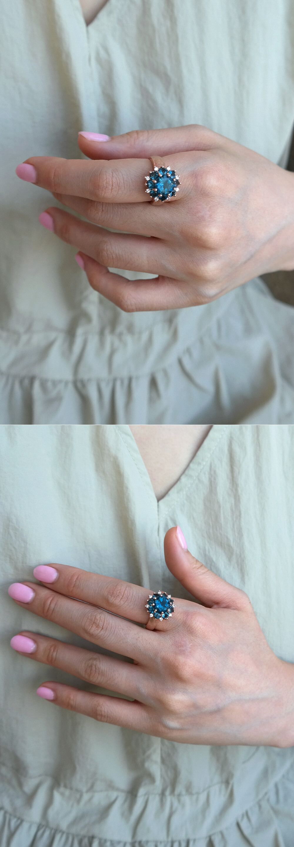 컬리 플라워 런던블루 토파즈 & 큐빅 반지