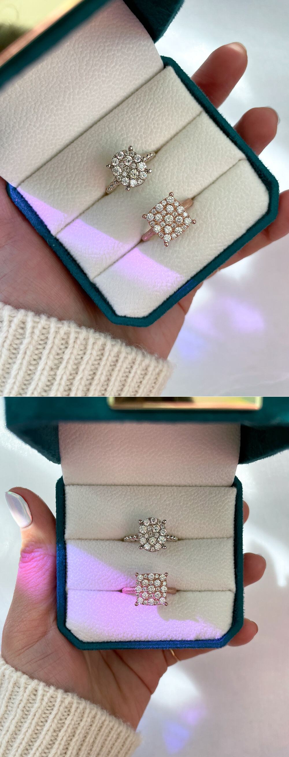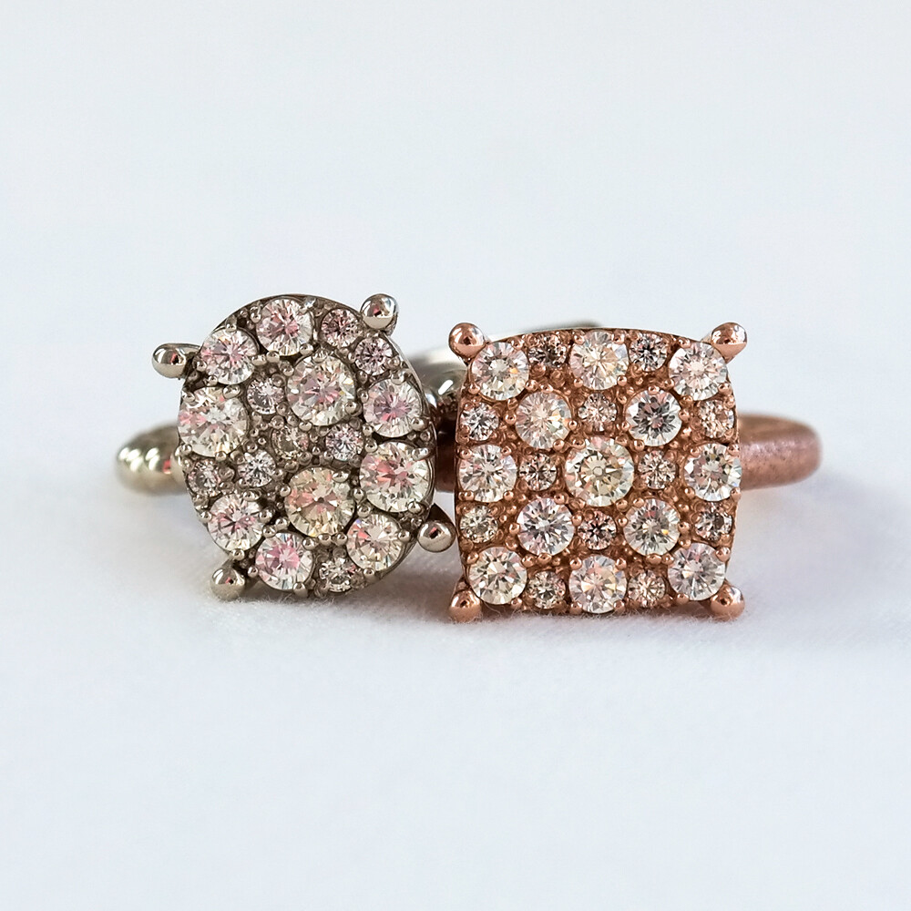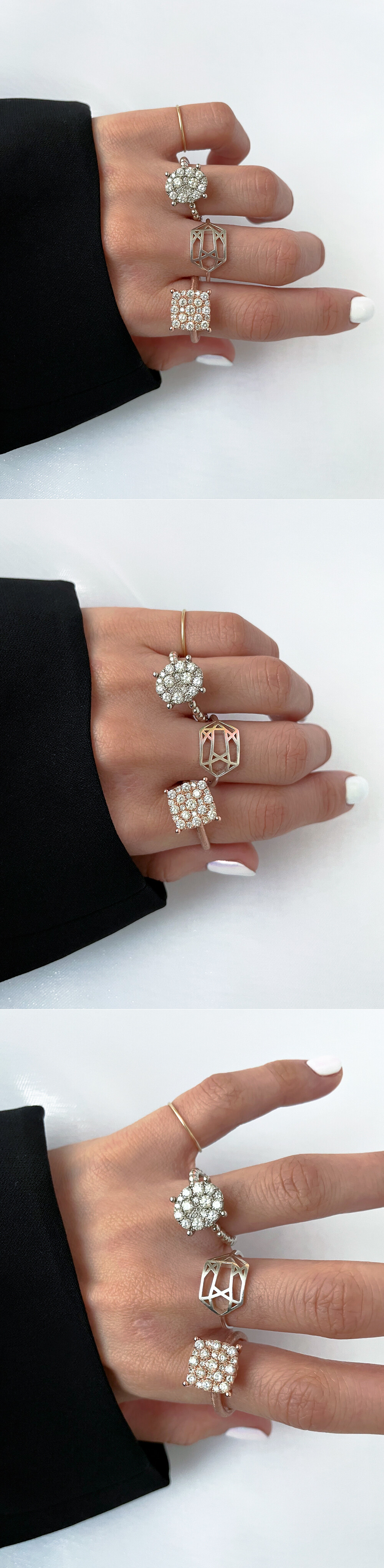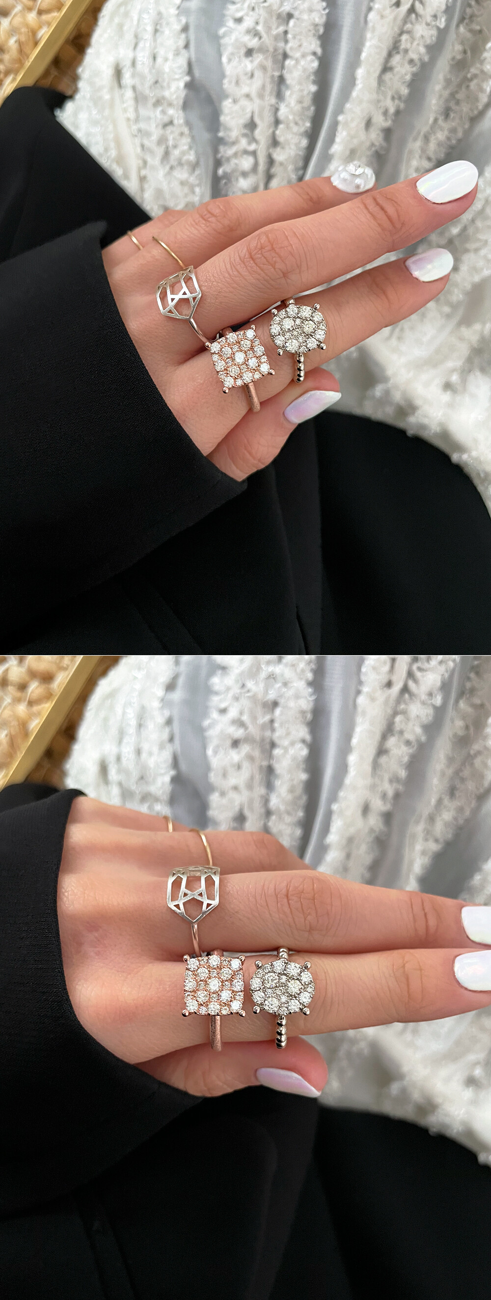 파베 세팅 오벌 플레이트 큐빅 반지 (자체 화이트 골드 - 리얼 화이트 골드) & 파베 세팅 사각 플레이트 큐빅 반지 (자체 핑크(로즈) 골드)