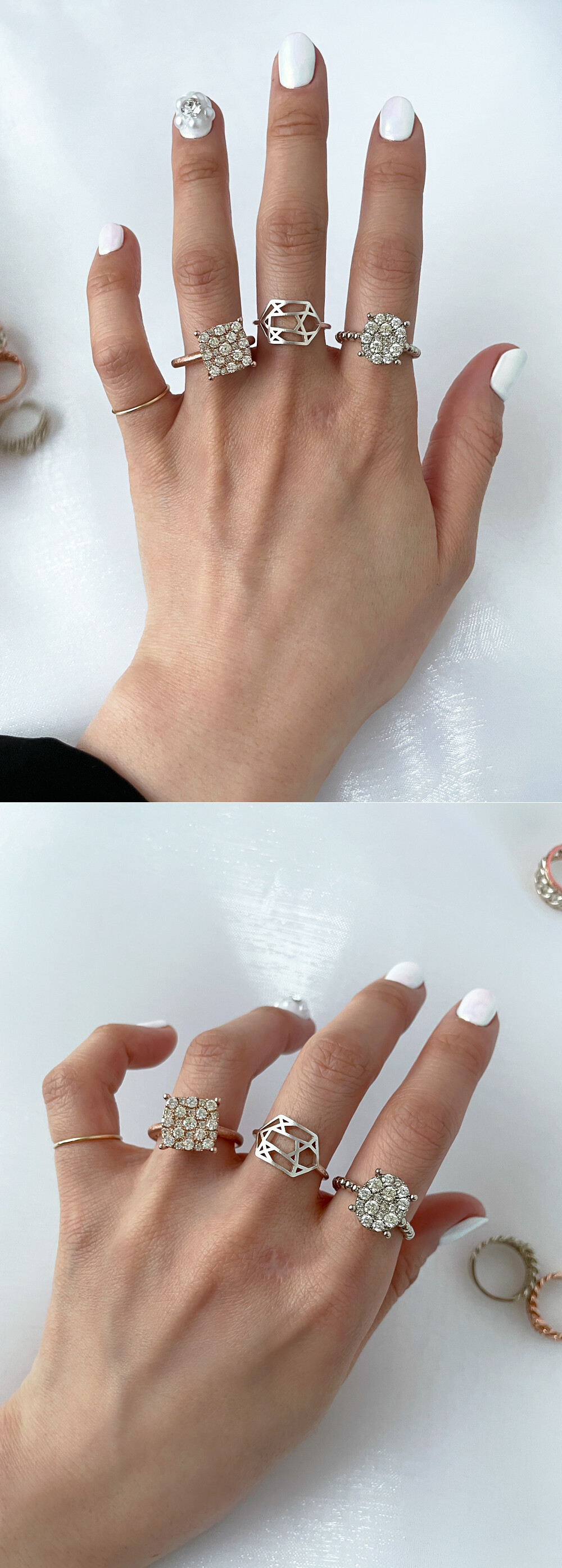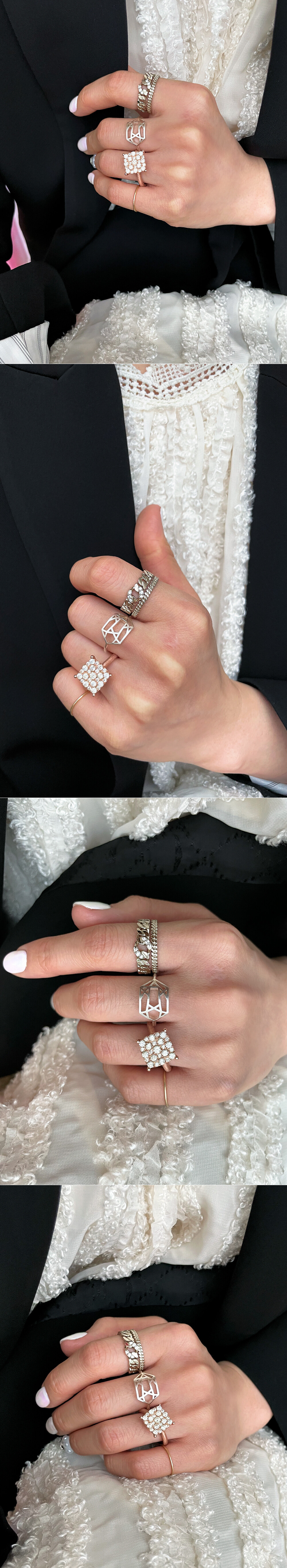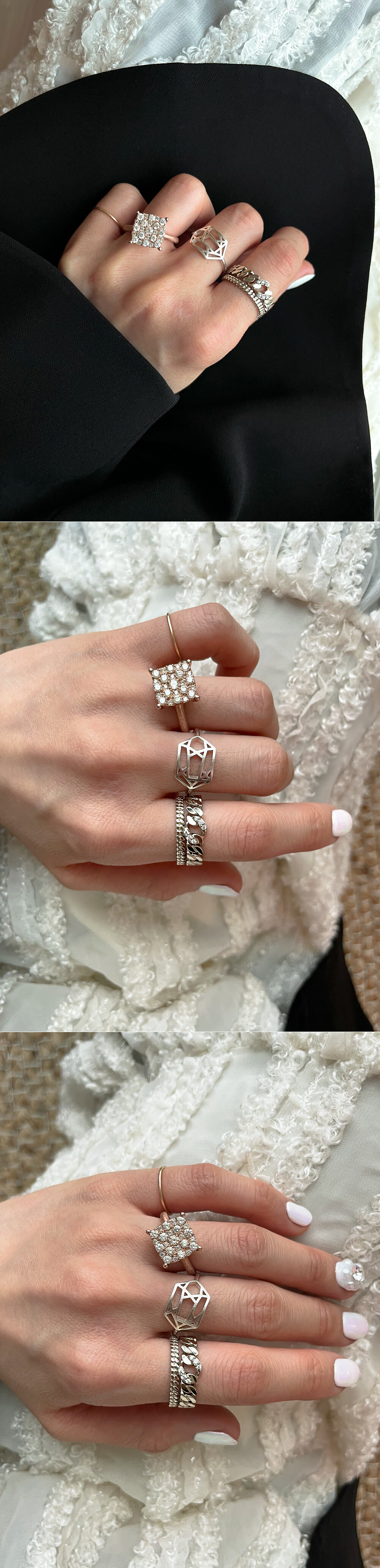 너무 예쁘고 고급스러운 디자인의 사 쉐입 큐빅 반지입니다. 👍🏼 밝은 컬러의 라이트 옐로우 ~ 라이트 브라운 컬러의 큐빅이 랜덤으로 세팅된 반지로 은은한 천연 다이아몬드의 빛깔과 광채를 표현한 조합의 큐빅 반지입니다. 다양한 사이즈의 큐빅이 조화롭게 세팅되어 전체적으로 세련된 느낌이 있구요, 밴드 부분은 스지 (무광) 처리로 마감된 디자인으로 앤틱한 느낌도 있습니다 :) 포인트 반지로 하나만 착용하셔도 정말 너무 고급스럽게 예쁜 반지! 엘레강스한 디자인의 데일리 및 포인트 반지를 찾으시는 분들께 추천해 드릴게요, ^^ 다이아몬드나 기타 원석 세팅을 원하시는 분은 네이버 톡톡으로 문의 주시면 진행 도와드리겠습니다. 💜