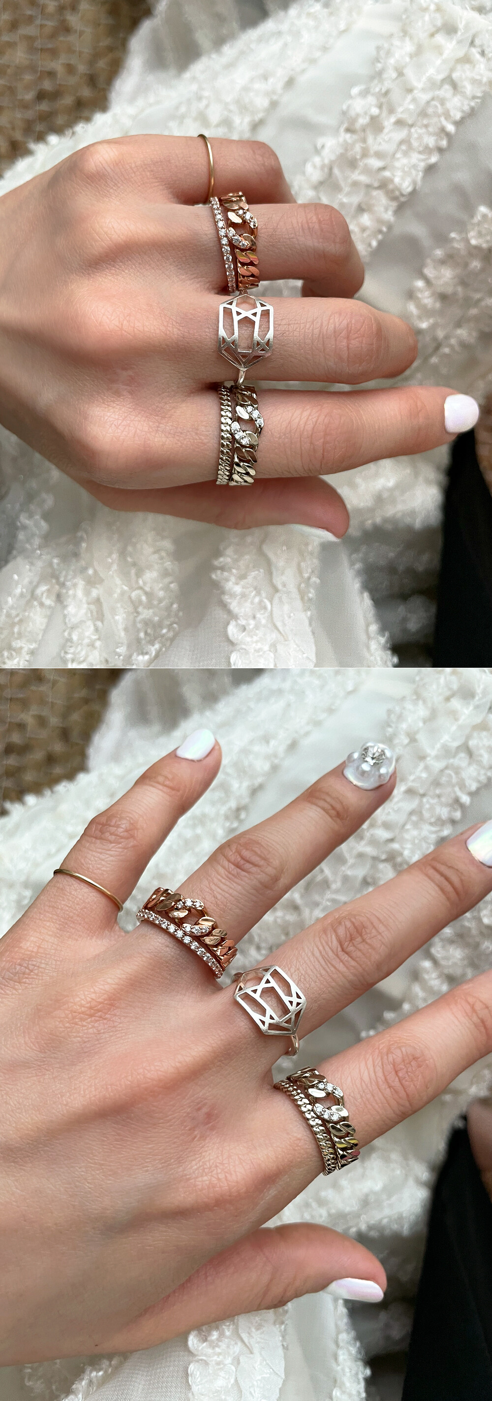 어떤 코디에도 잘 어울릴만한 체인 디자인의 큐빅 반지입니다. 👍🏼 밴드 디자인이 약간 달라서 두 가지 타입으로 나뉘어요. 자세한 디테일은 사진에서 확인해 주시면 되구요, 세련된 디자인의 데일리 및 포인트 반지를 찾으시는 분들께 추천해 드릴게요 ^.^💍 * 기본 설정가는 "NO.1 체인 타입 (자체 화이트 골드 - 리얼 화이트 골드)" 으로 되어있습니다. 디자인과 사이즈에 따라 가격이 다르므로 자세한 가격은 옵션에서 디자인 및 함량 & 사이즈를 선택하셔서 확인해 주세요. 💚