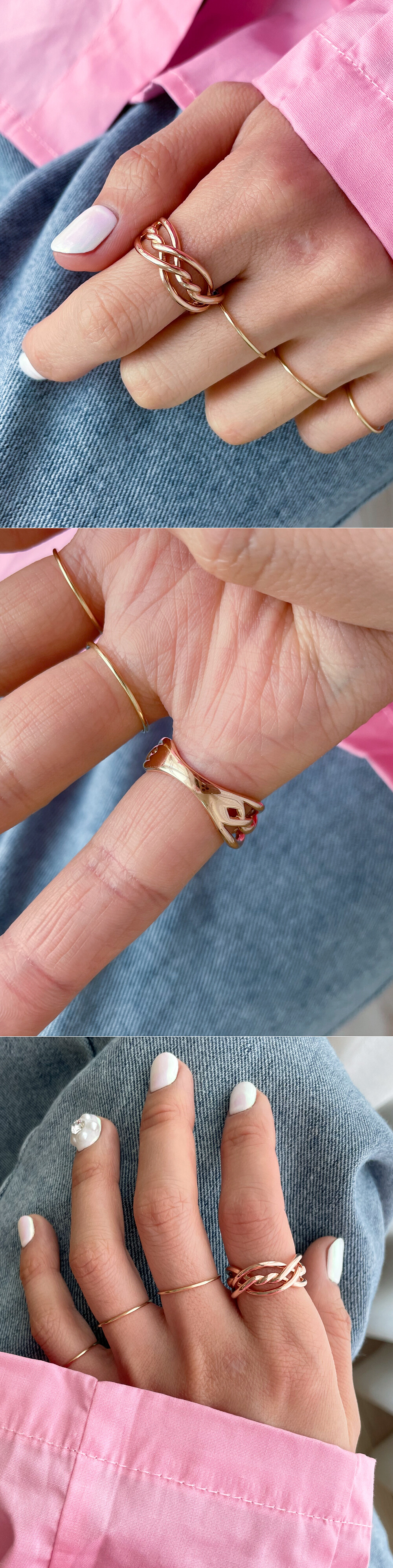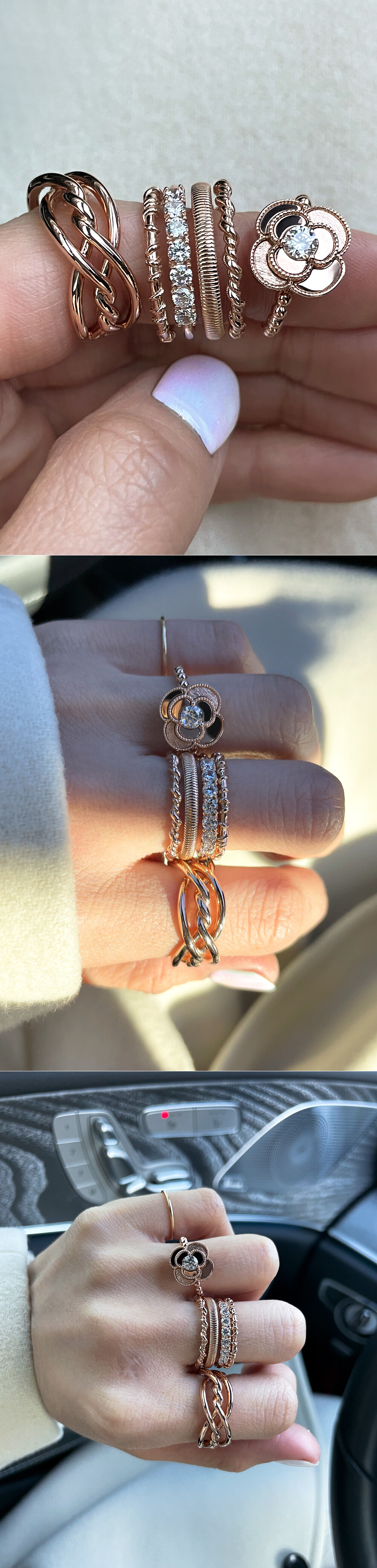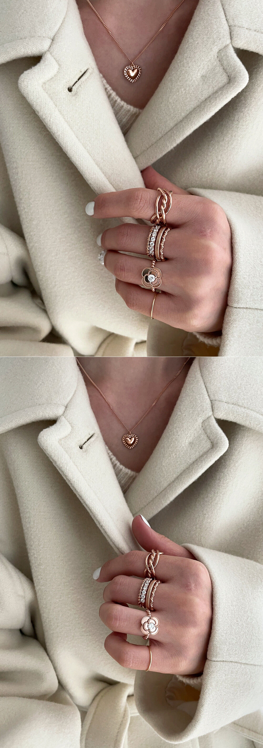 볼드한 스타일의 꼬임 반지입니다. 언발란스한 패턴의 꽈배기 반지 스타일로 유니크하면서 세련된 느낌이 있어요 :) 중량감이 있어서 안정감 있게 착용하시기 좋습니다. 볼드한 스타일의 편안한 데일리 및 포인트 반지를 찾으시는 분들께 추천해 드릴게요! 💖