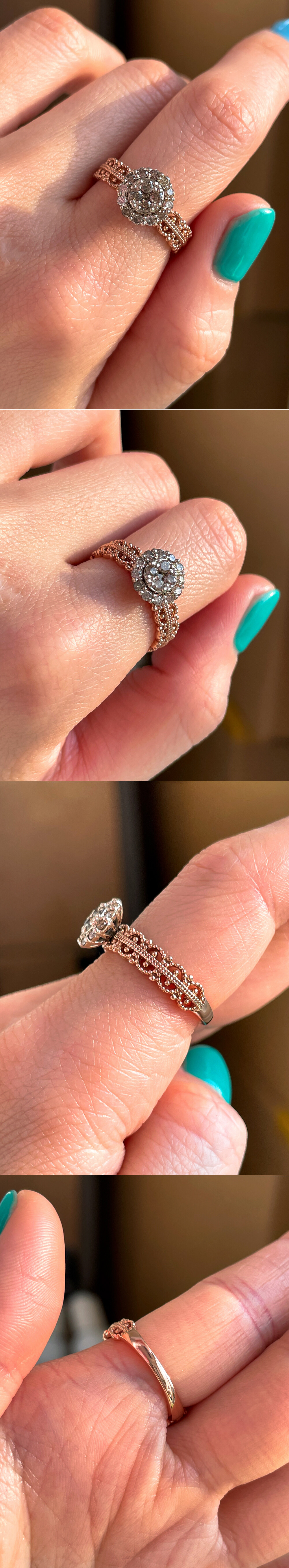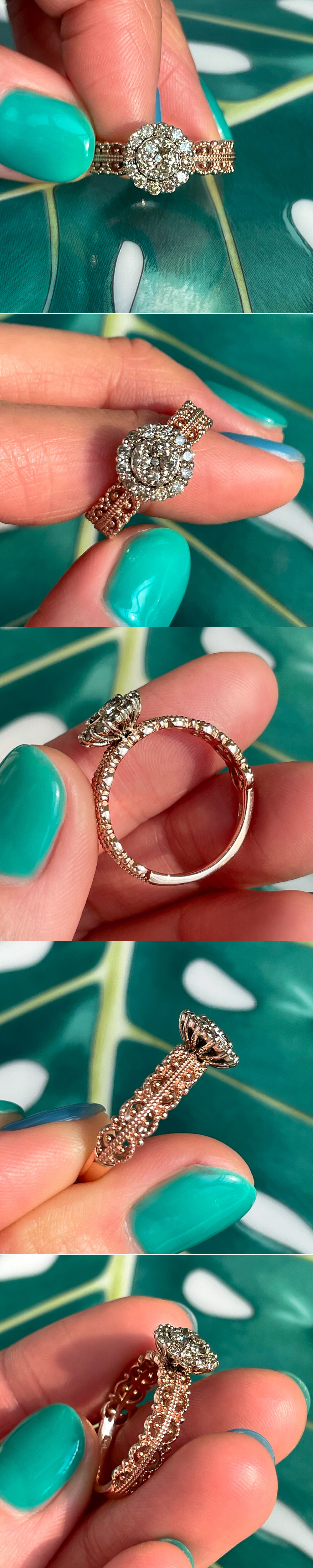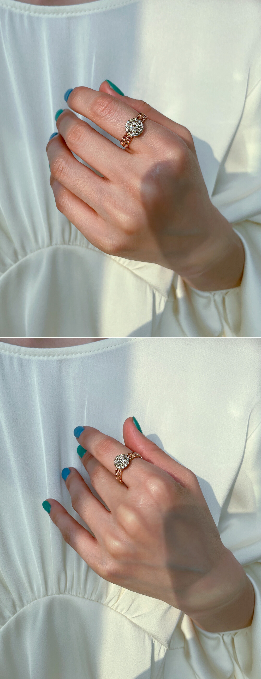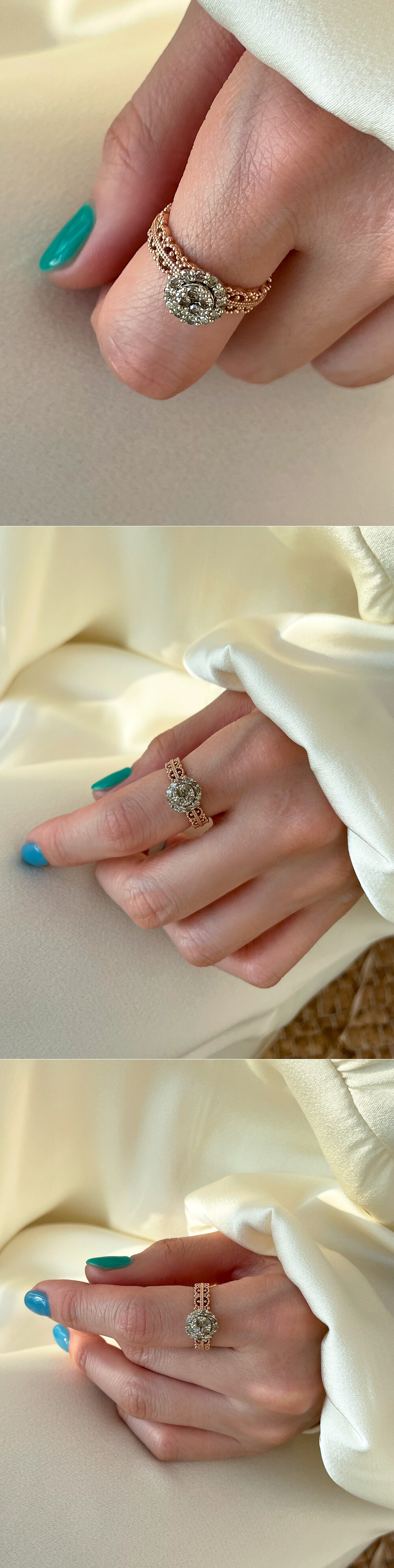 자연에서 온 아름다움을 그대로 간직한 내추럴 코냑 다이아몬드가 세팅된 투톤 디자인 반지입니다. 🌼💛✨ 전체적으로 정교하고 섬세한 레이스 디자인으로 여성스러운 느낌을 물씬 풍긴답니다. 참고로 촬영된 반지는 프롱 부분은 도금이 되지 않은 자체 화이트 골드 (리얼 화이트 골드) 로 제작된 반지입니다. 골드 색상은 원하시는 색상으로 선택하셔서 주문 가능하니 옵션에서 골드 색상을 각각 선택해 주세요. (블루 다이아몬드로도 변경 가능!) 스톤은 깔끔한 파베 세팅으로 마감되었어요. 코냑 다이아몬드이지만 약간씩 다른 컬러를 가진 내추럴 코냑 다이아몬드들이라 스톤 하나하나의 컬러가 모두 일정하지 않으니 이 점도 꼭 참고해 주시면 좋겠습니다. 자연스러운 천연 다이아몬드 느낌을 좋아하시는 분들, 그리고 화려하지만 깔끔하고 안정감이 있는 디자인의 반지를 찾으시는 분들께 추천해 드릴게요 :) 💖