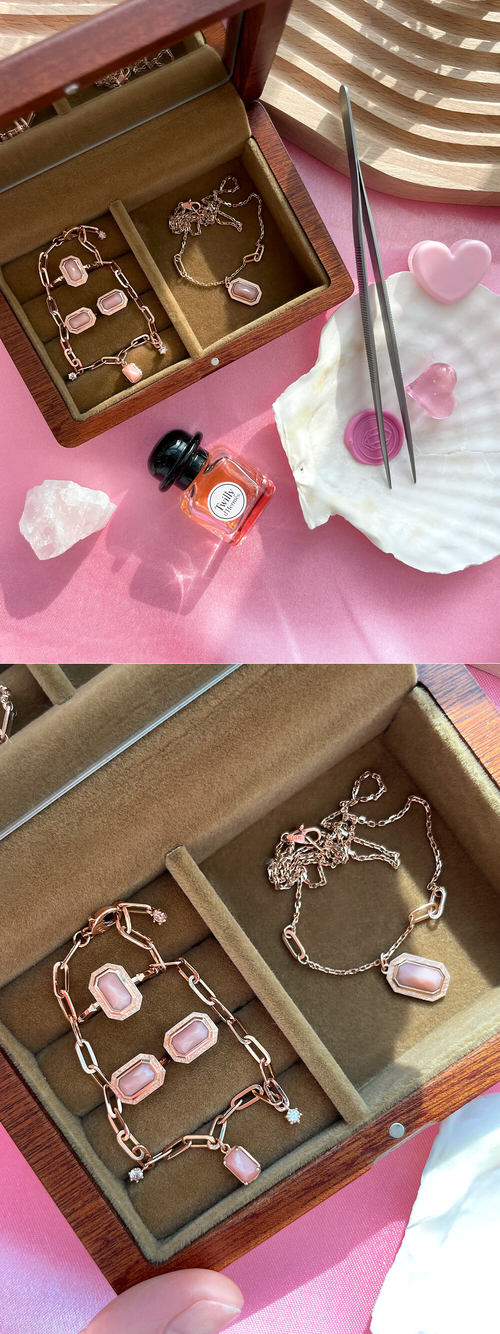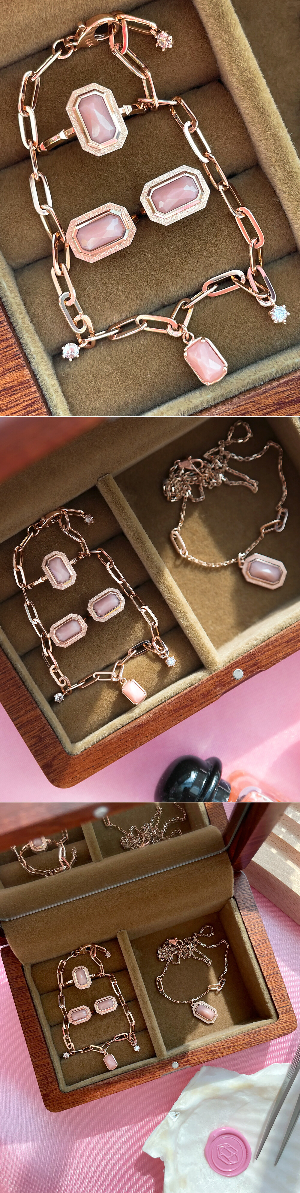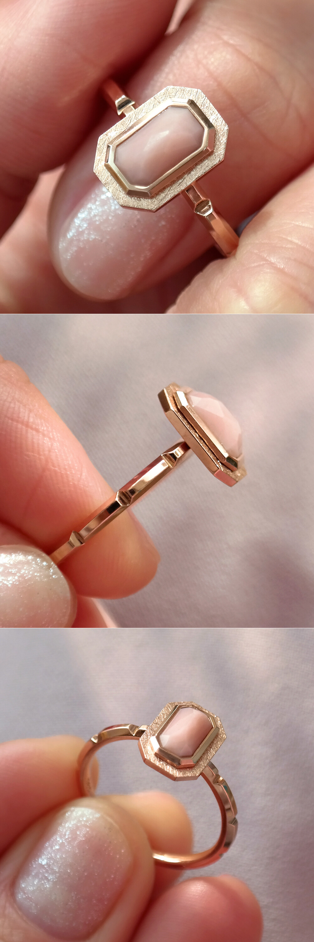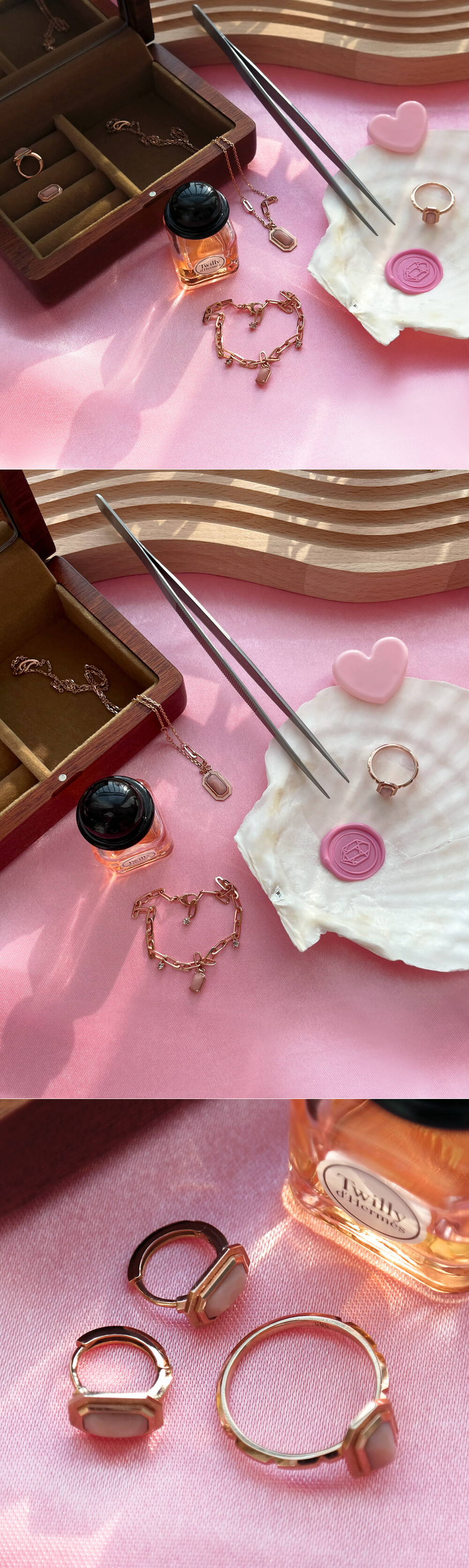 반짝반짝~ ✨ 사랑스럽고 러블리한 컬러를 가진 핑크 오팔 반지입니다. 💍 귀한 사각 로즈컷의 핑크 오팔이 메인으로 세팅된 포인트 반지로, 엣지있고 세련된 느낌을 주는 아이에요 :) 깔끔한 베즐 세팅으로 제작되었구요, 베즐 부분에 샌딩된 무광 포인트가 들어가 있어서 고급스러운 느낌이 한층 더해졌어요. 밴드 부분에도 디테일한 디자인이 들어가 있어 전체적으로 다양한 매력이 느껴지는 아이랍니다. 😃 세련미 넘치는 디자인으로 멋스러운 느낌의 포인트 반지로 추천해 드릴게요! 🩷