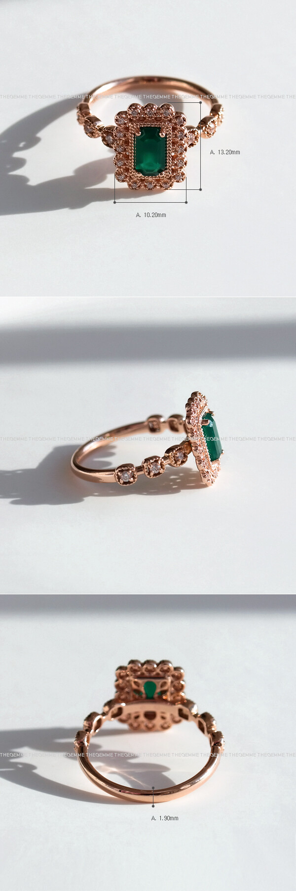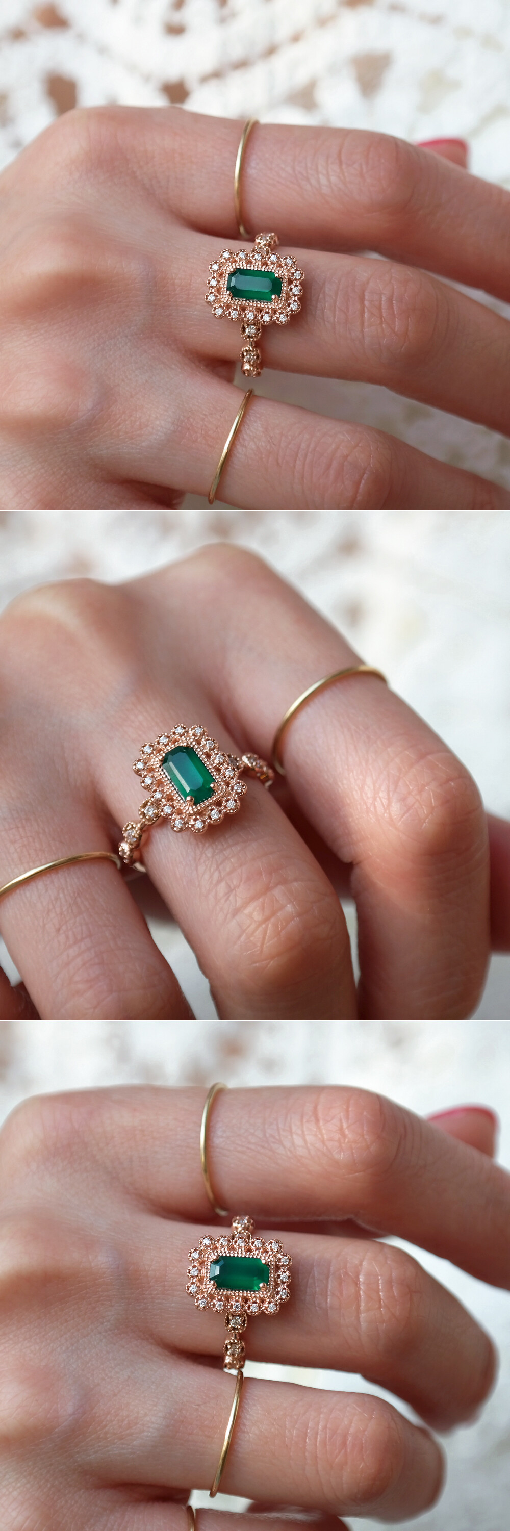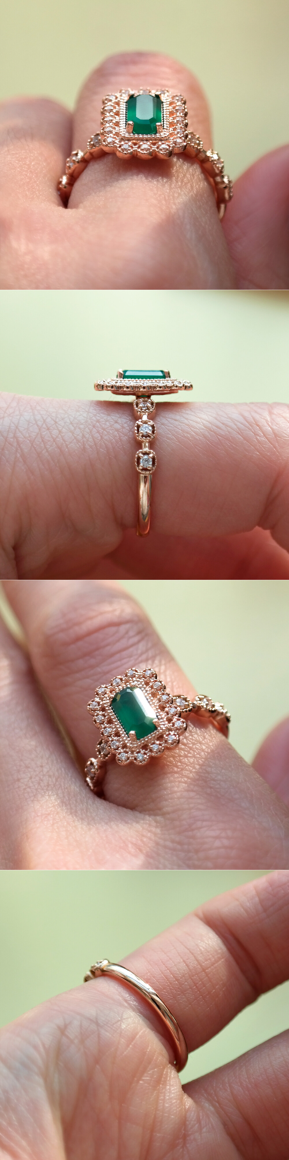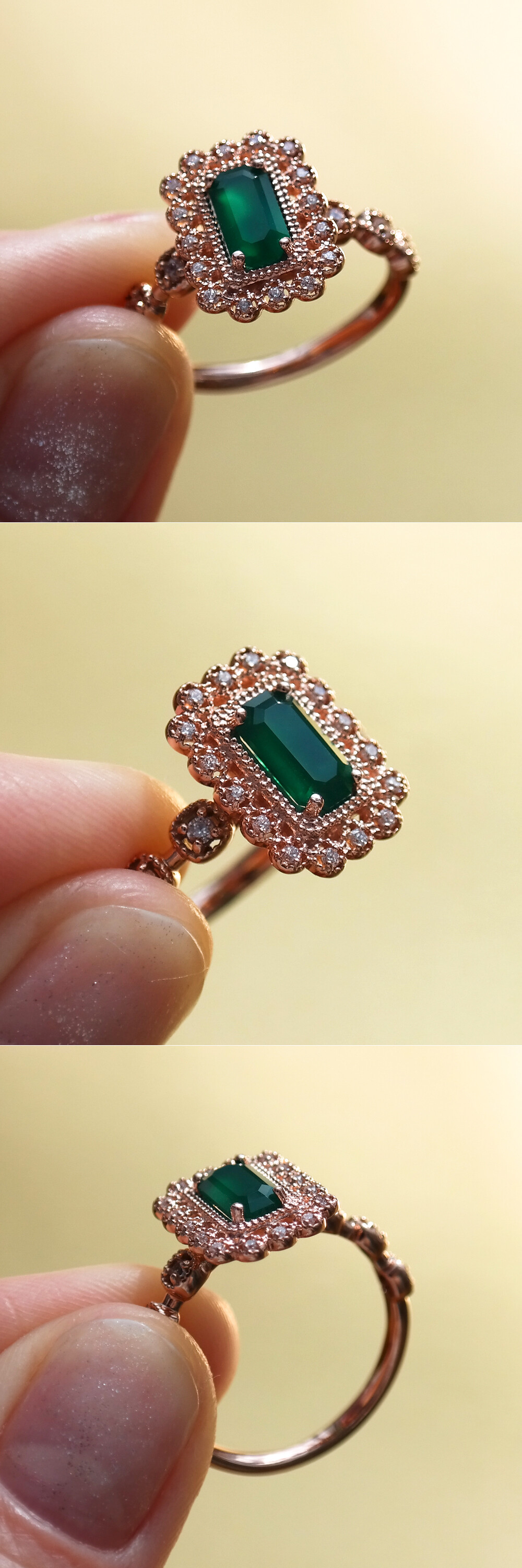 아르누보 에메랄드컷 그린 오닉스 & 큐빅 반지