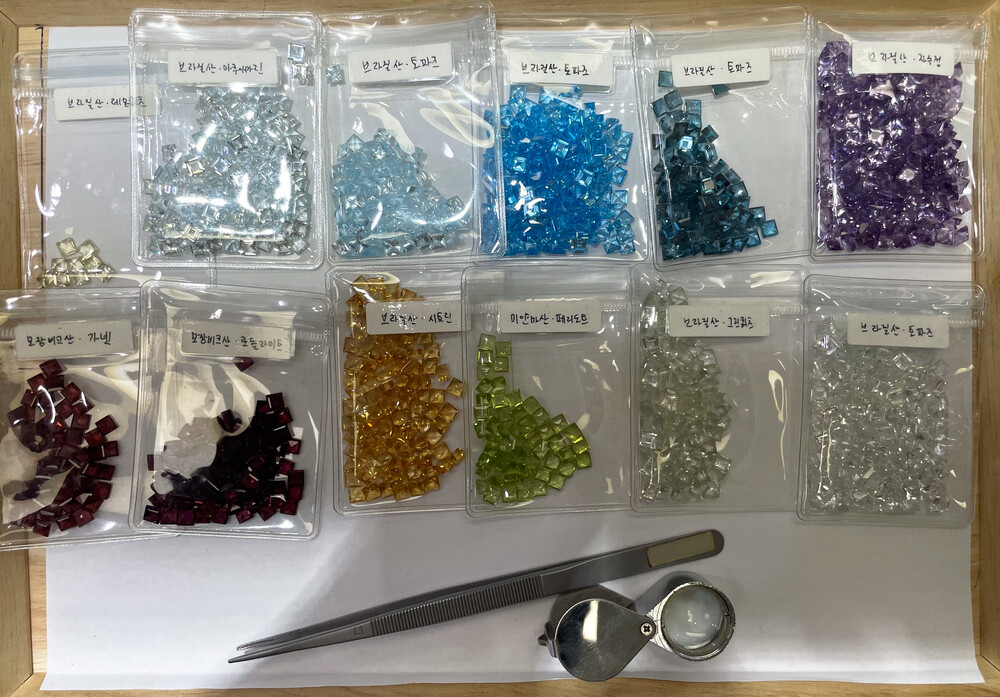 이 외에도 다양한 종류의 원석을 직접 선택하셔서 세팅하실 수 있도록 컬러별로 여러 가지 스톤들을 준비했어요.