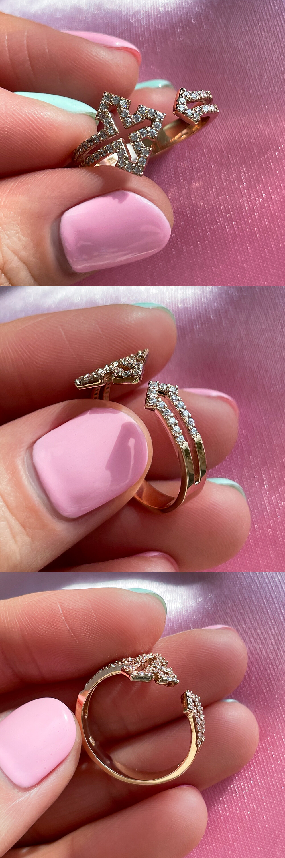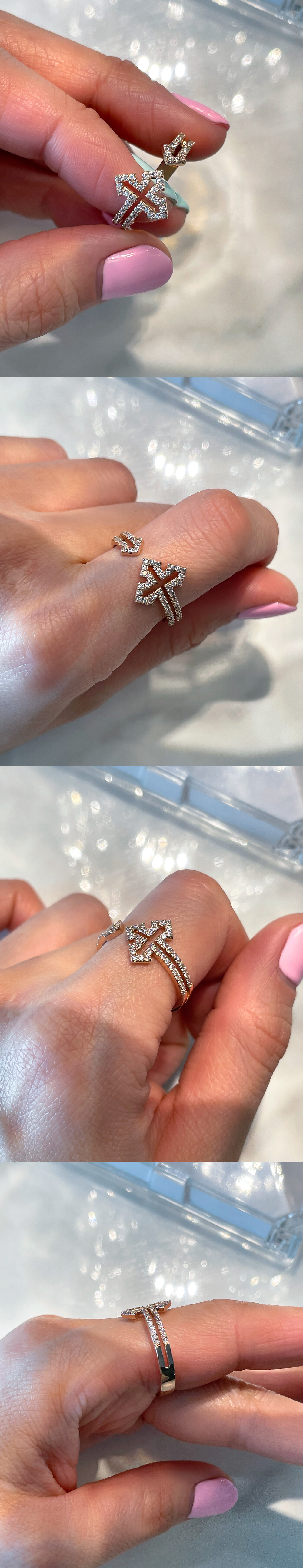 엣지있는 매력을 가진 로마 스타일 십자가 반지입니다. ✝️ 윗면이 살짝 오픈된 스타일의 반지구요, 데일리로도 편안하게 착용하실 수 있는 안정감 있는 디자인입니다. 🙌🏼 메인부터 측면까지 큐빅들이 촘촘히 세팅되어 있어서 고급스럽기까지! 어떤 코디에도 잘 어울리는 트렌디한 디자인으로 레이어드 반지로도 좋고, 매일매일 착용하실 데일리 반지나 포인트 반지를 찾으시는 분들께도 강추해 드릴게요. ❤️