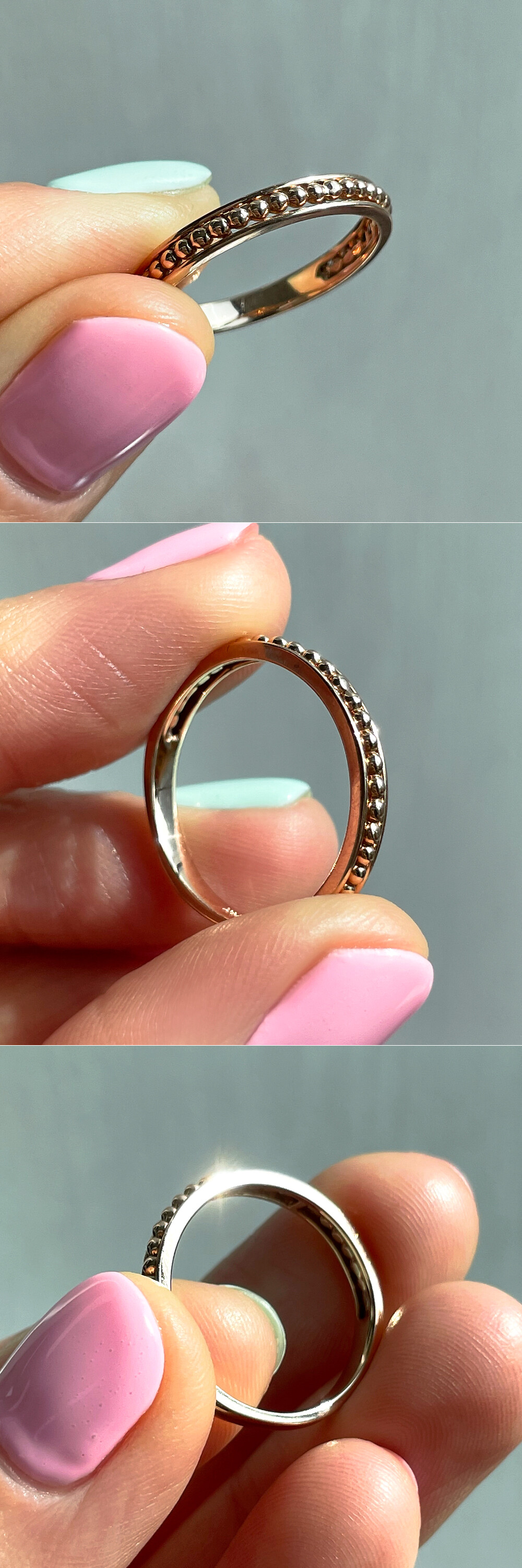 볼 디자인의 민자 반지입니다. 💍 자그마한 볼들이 이어진 볼 라인을 중심으로 위아래 사이드 부분에 직선의 라인이 들어가 있어요. 군더더기 없이 깔끔하게 착용하시기 좋은 반지로 데일리 반지 및 레이어드 반지를 찾으시는 분들께 추천해 드릴게요! 🙌🏼🩷
