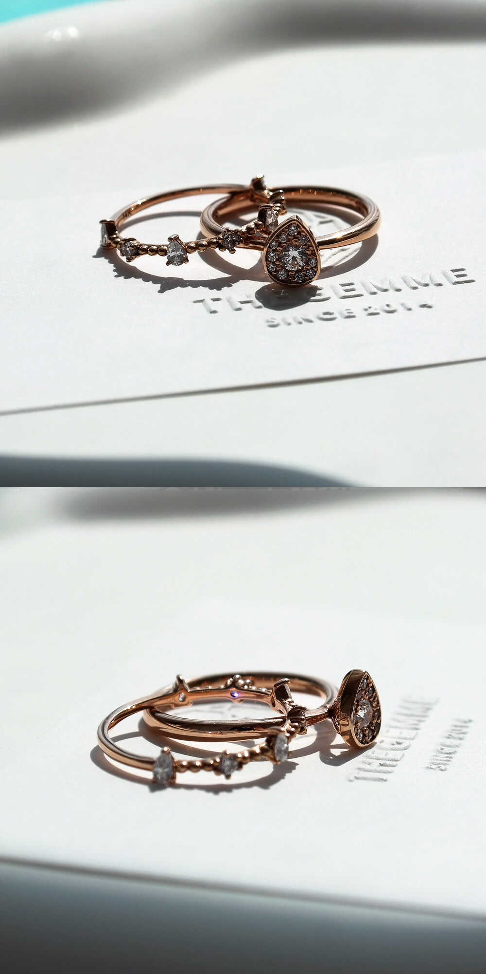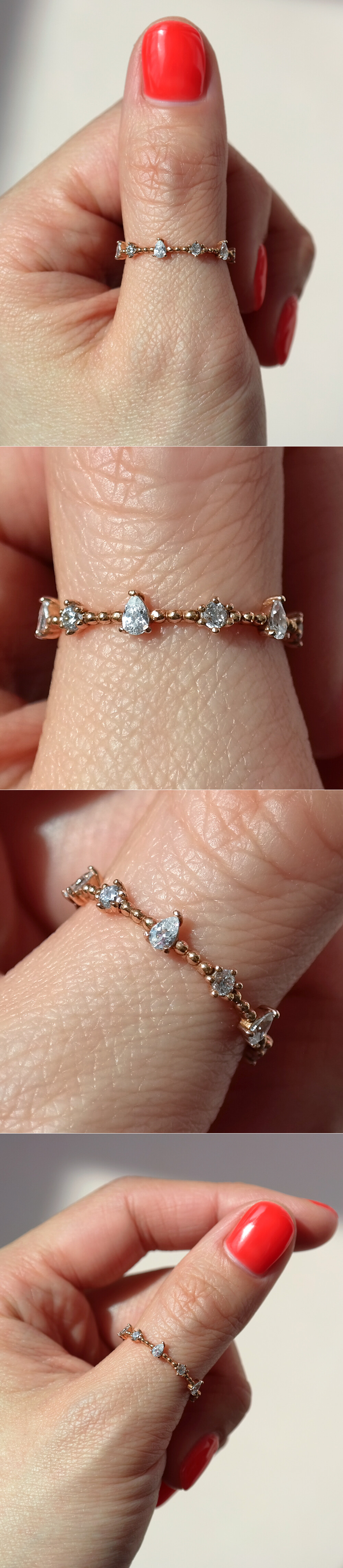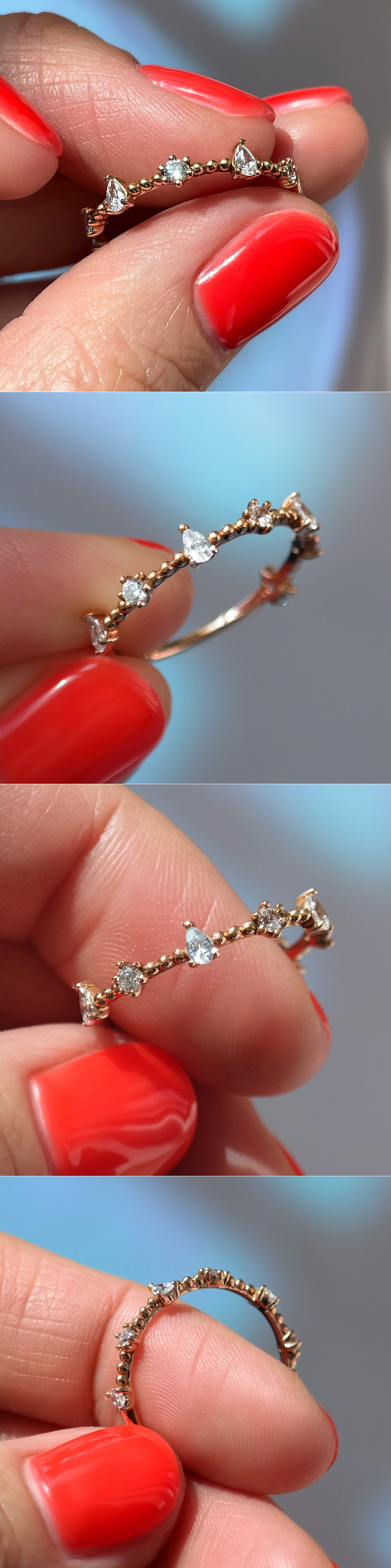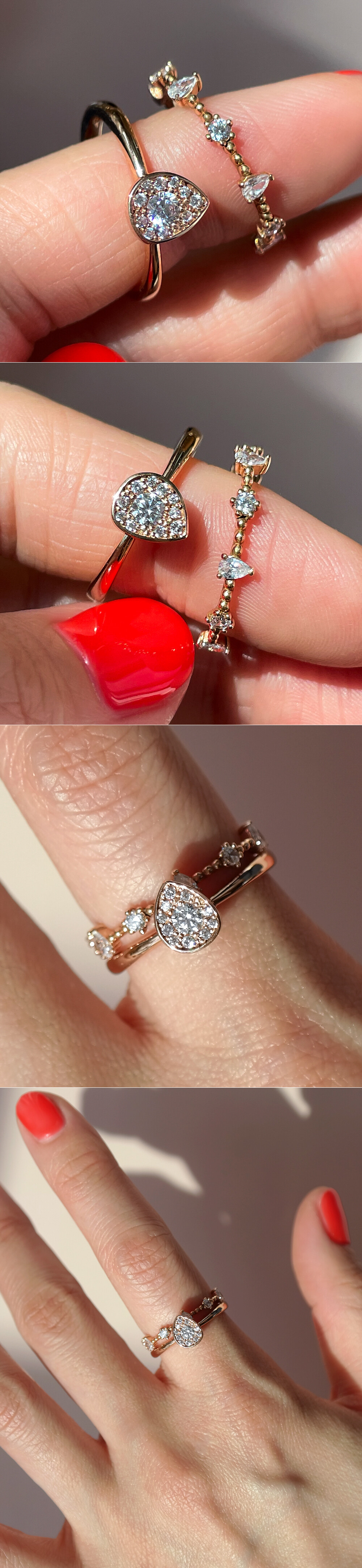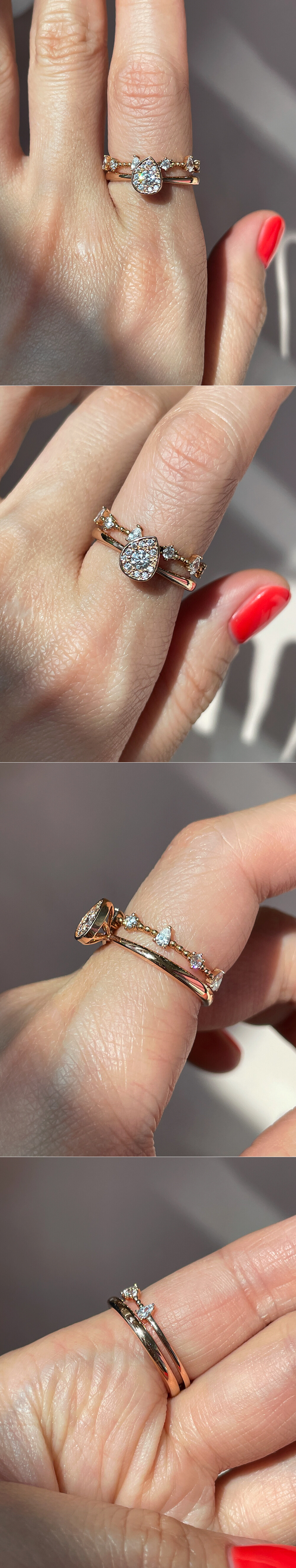 세련된 큐빅 장식의 반지입니다. 페어컷 큐빅과 라운드 큐빅이 여리여리한 방사형 느낌으로 연결된 디자인이에요. 원 포인트 반지로 착용하시기에도 좋고, 가드링으로도 활용도가 아주 높습니다.❤️