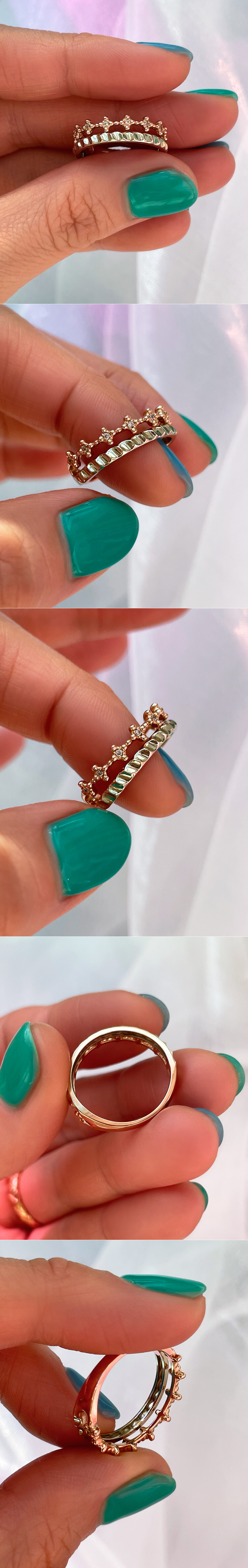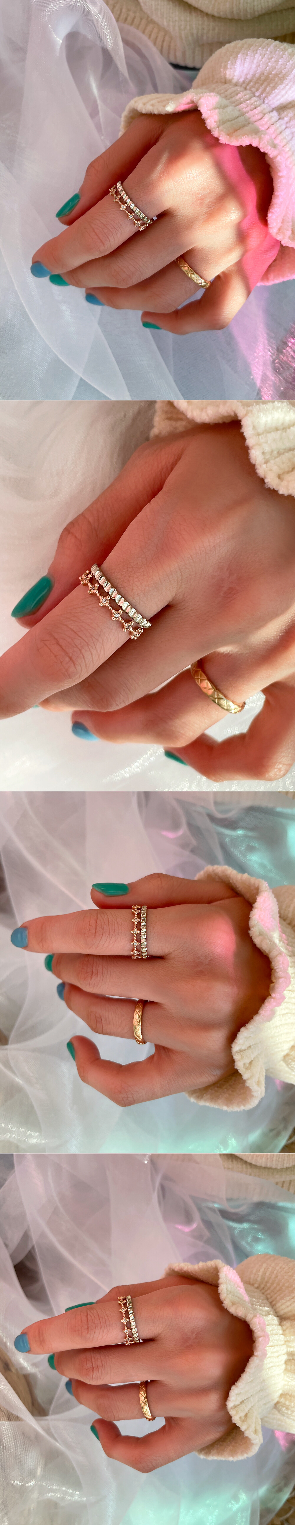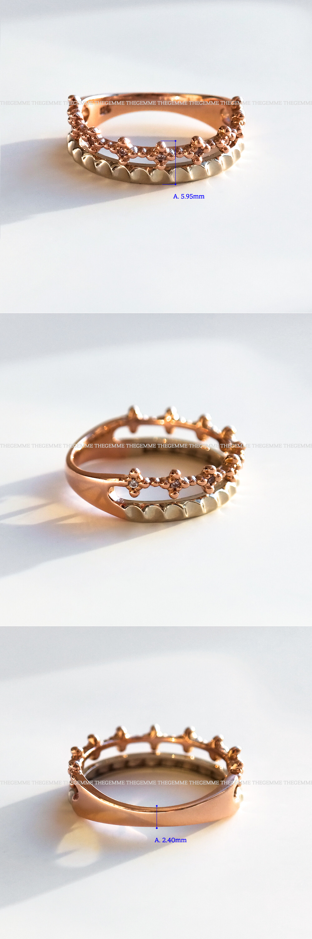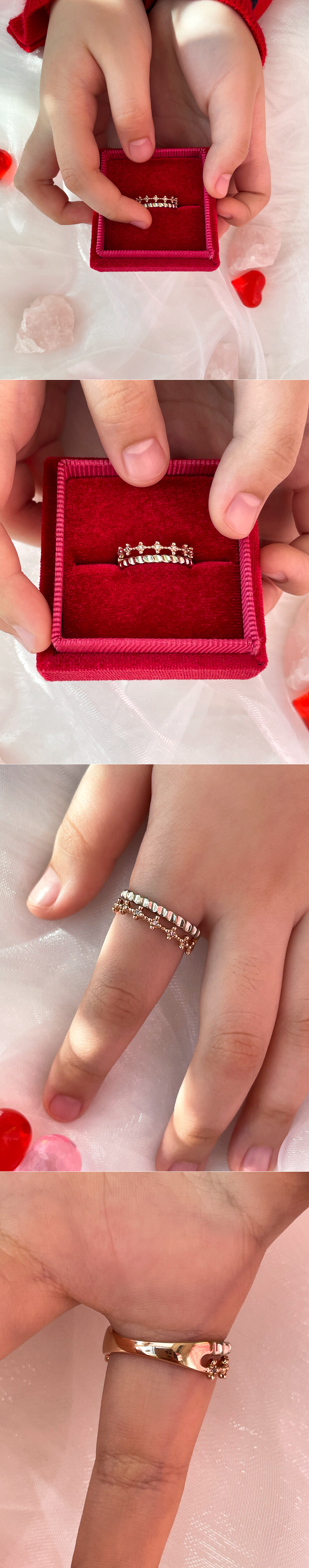 유니크한 플라워 패턴의 두 줄 반지입니다. 🌸 세련된 느낌의 투톤 디자인으로 제작된 반지에요. 옵션에서의 골드 색상은 이미지에서 자체 (핑크) 골드 부분입니다. 빗살 모양의 라인 (화이트 골드 부분) 은 포인트 골드색상 옵션에서 따로 선택해 주세요! (원톤으로 주문을 원하시는 경우에는 골드 색상을 동일하게 선택해 주시면 됩니다.) 트렌디한 디자인의 포인트 반지를 찾으시는 분들께 추천해 드릴게요 :) 💜