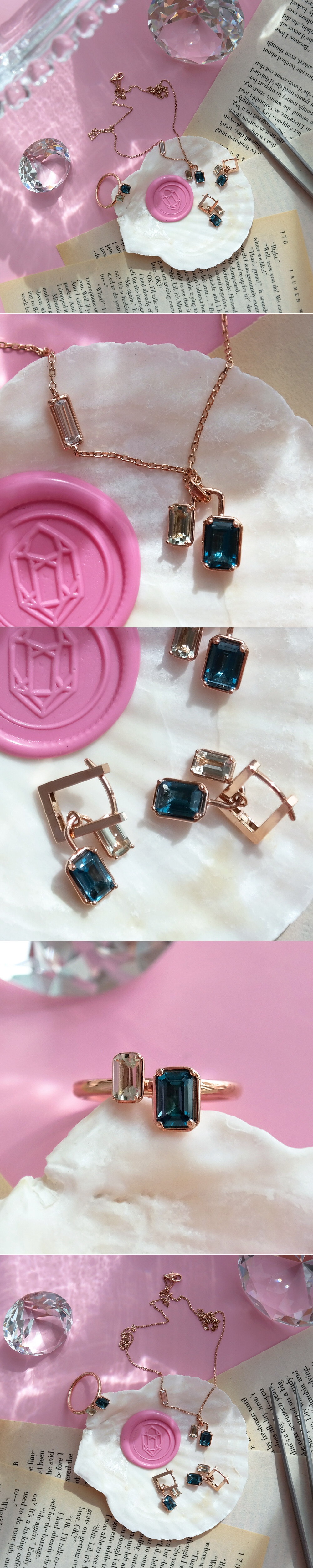 심플하면서도 우아한 매력을 지닌 스톤 반지입니다. 💍 차분하고 딥한 매력의 블루 컬러를 가진 런던블루 토파즈와 은은하고 옅은 빛깔의 그린 쿼츠가 함께 세팅된 디자인이에요. 모두 에메랄드 컷의 쉐입을 가진 스톤들이랍니다. 유니크한 디자인으로 포인트로 착용하실 스톤 반지를 찾으시는 분들께 추천해 드릴게요 :) 💙