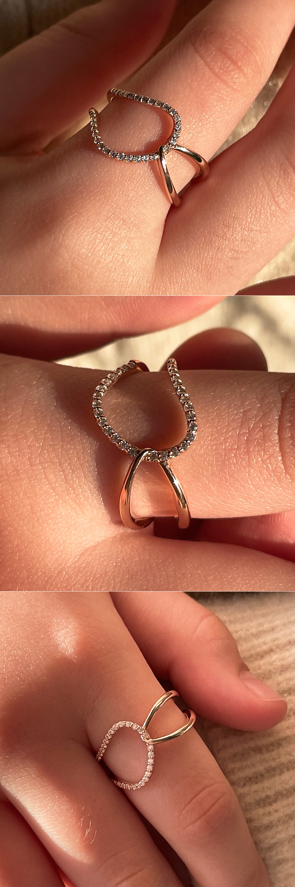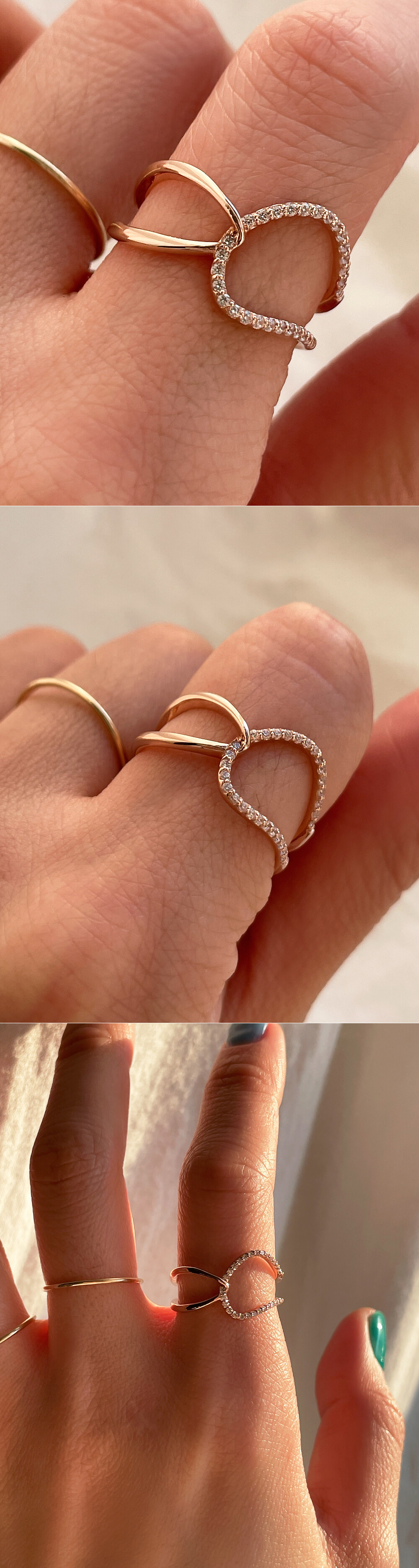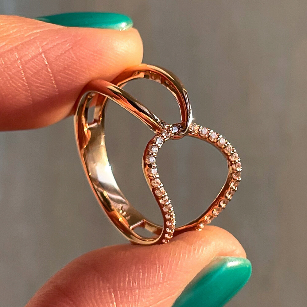 폭 넓은 겹침 디자인의 큐빅 반지입니다. 간결한 라인으로 세련미가 돋보이는 디자인이에요. 자연스러운 곡선의 느낌을 좋아하시는 분들께 데일리 및 포인트 반지로 추천해 드릴게요. 💍🩷