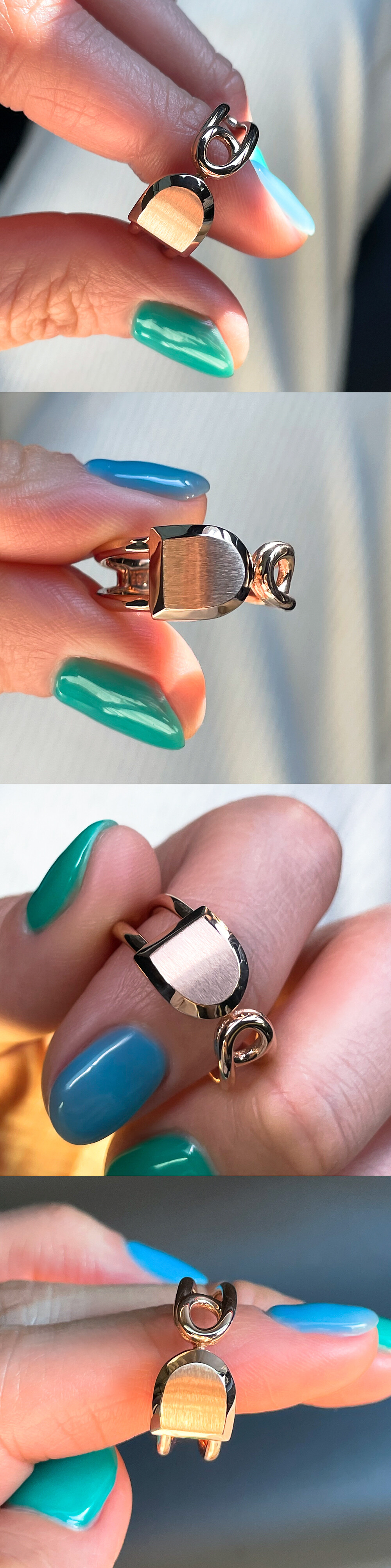 세련된 스타일의 옷핀 디자인 반지입니다. 💍 볼드한 중량감과 군더더기 없이 딱 떨어지는 디자인으로 시선을 사로잡는 아이에요. 😃 민자 스타일 (NO.1), 큐빅 스타일 (NO.2) 두 가지 타입으로 나뉩니다 :) 자세한 디테일은 사진과 영상에서 확인해 주세요. * 기본 설정가는 "민자 스타일 (NO.1)" 로 되어있습니다. 디자인과 사이즈에 따라 가격이 다르므로 자세한 가격은 옵션에서 디자인 및 함량 & 사이즈를 선택하셔서 확인해 주세요.