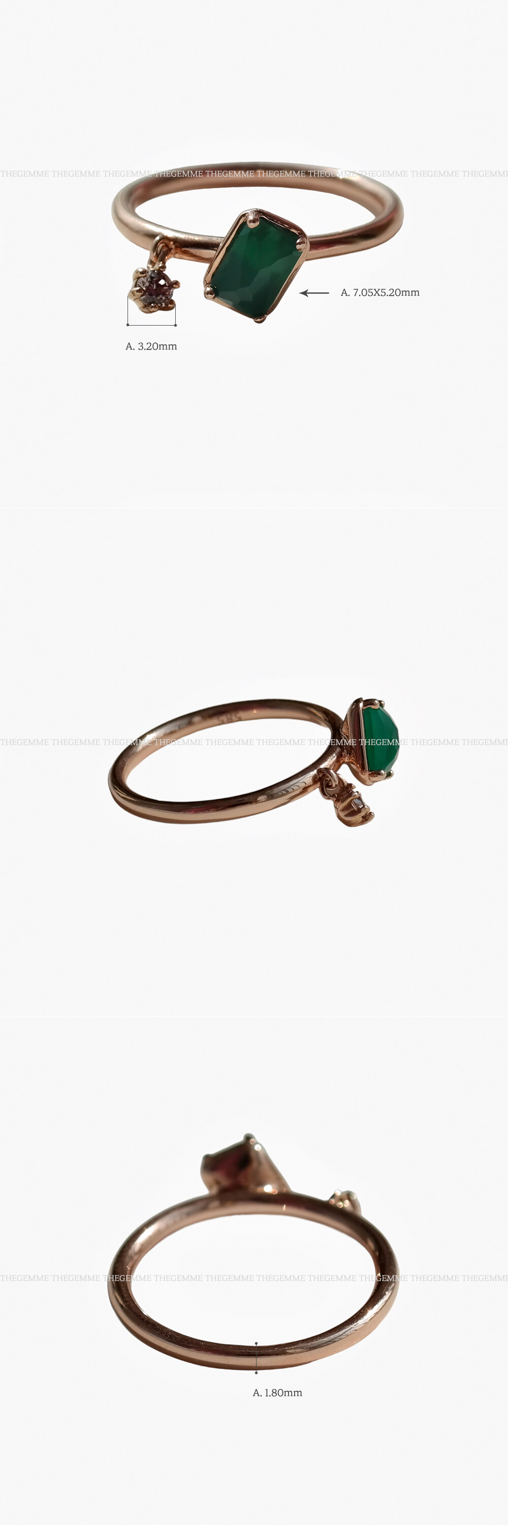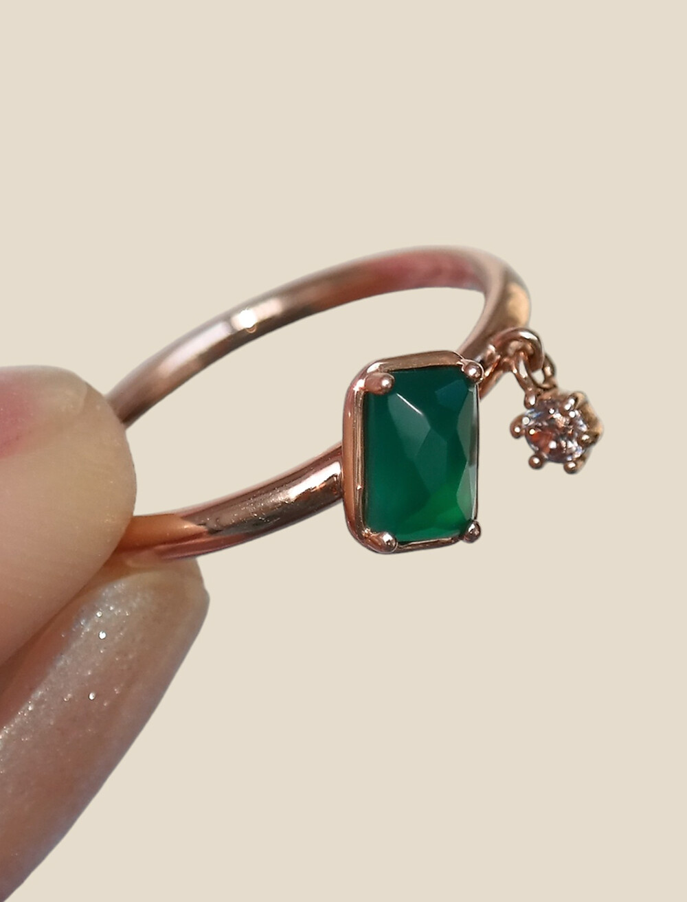 사각 로즈컷 그린 오닉스 & 코냑 큐빅 반지