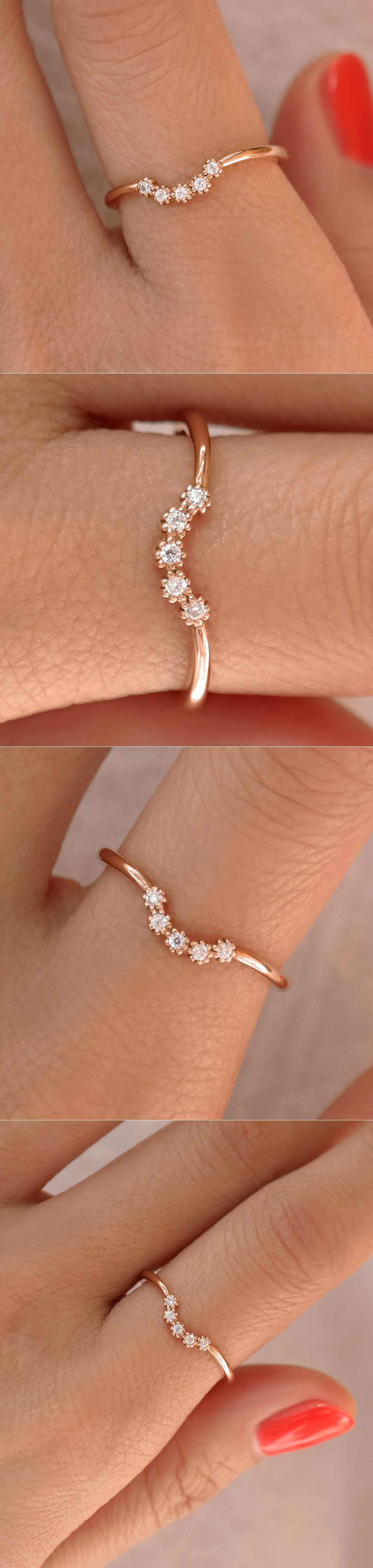 케이프 스타일의 반지입니다. 여성스러운 곡선 라인으로 심플하면서도 세련된 느낌이 있어요. 하나만 착용하셔도 예쁘고 이미지와 같이 다른 메인 반지와 함께 착용하실 레이어드 반지로도 추천드려요 :)