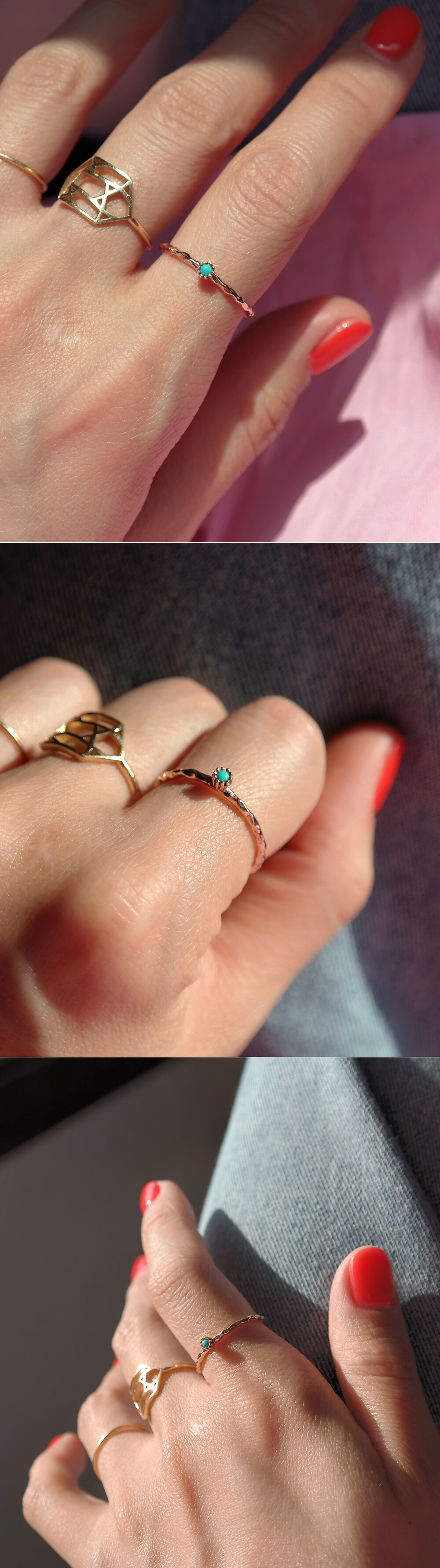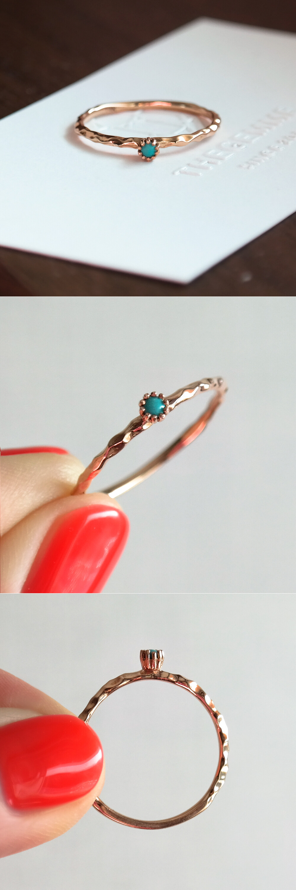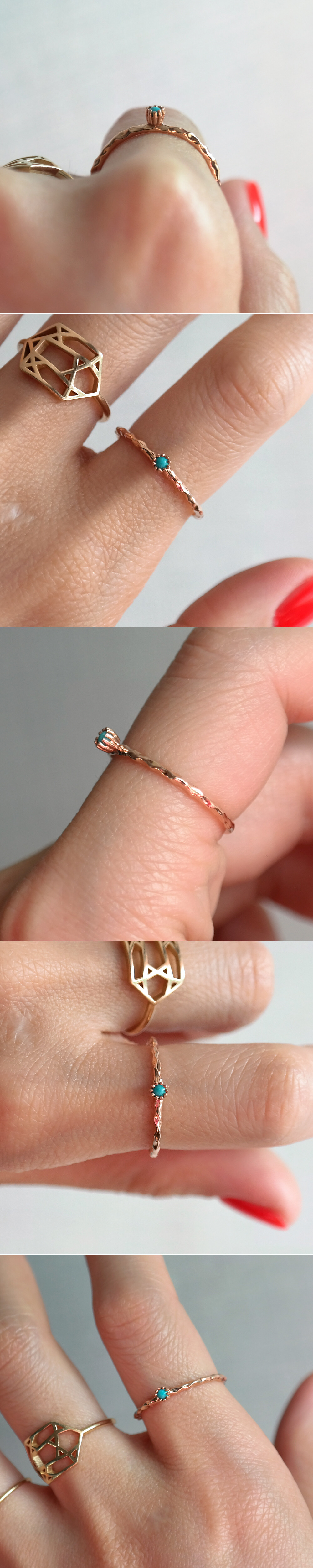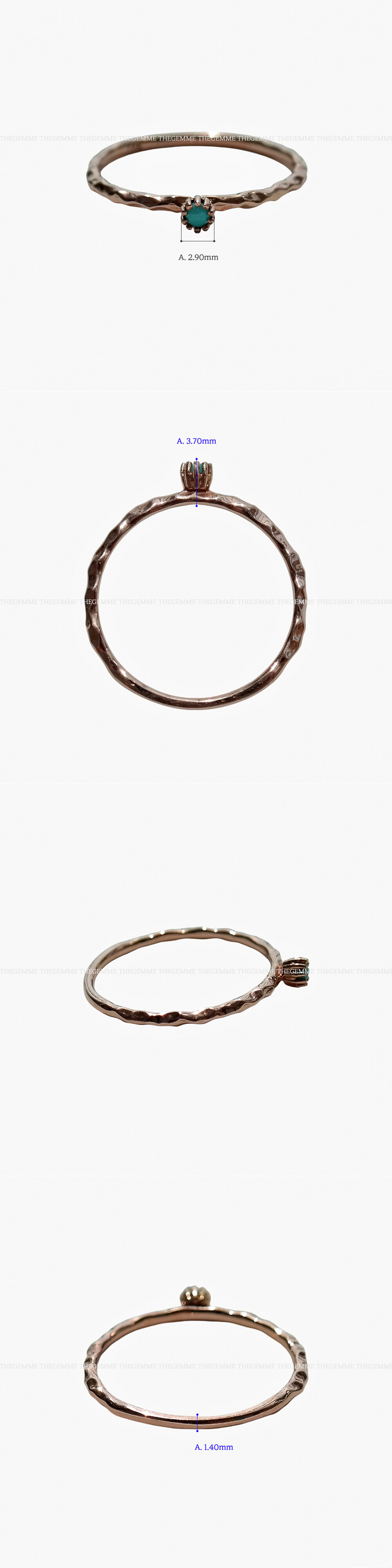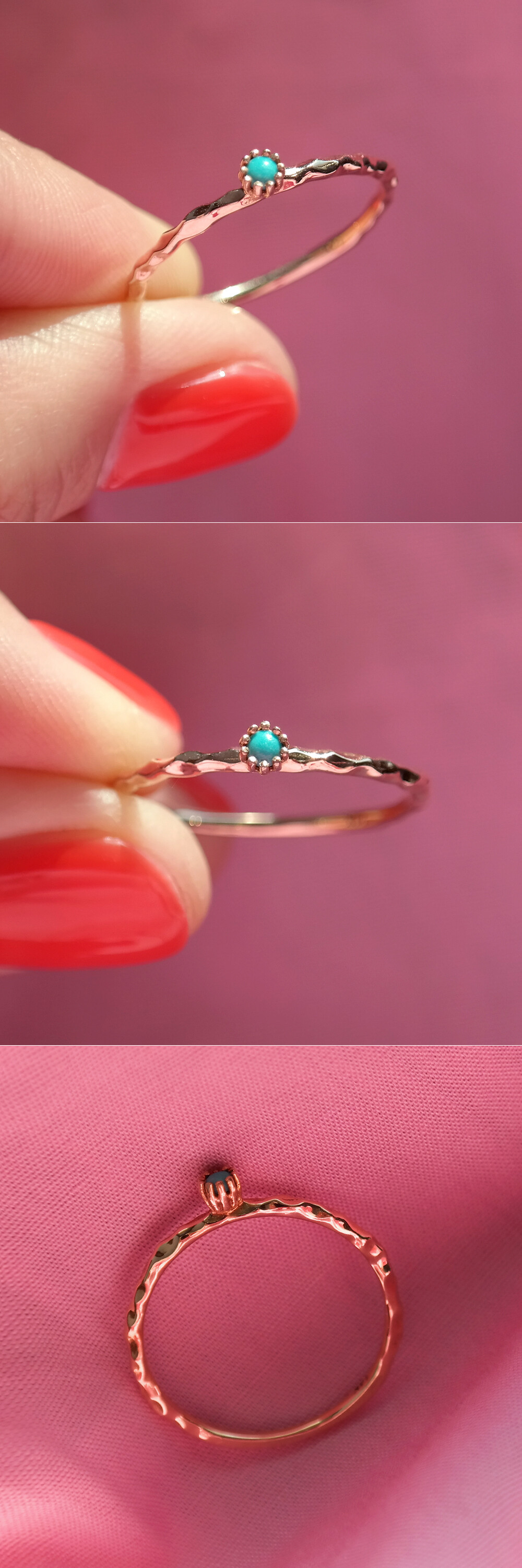 미니멀한 사이즈의 천연 터쿼이즈가 세팅된 스톤 반지입니다. 터쿼이즈 지름은 약 2mm 사이즈로 돔 형태의 캐보션 쉐입이라 귀여운 느낌이 한가득이에요. 불규칙적으로 구불구불한 밴드 디자인 또한 시선을 끌어당기는 매력이 있는 아이랍니다. 사랑스러운 디자인의 스톤 반지를 찾으시는 분들에게 추천해 드릴게요. 💙