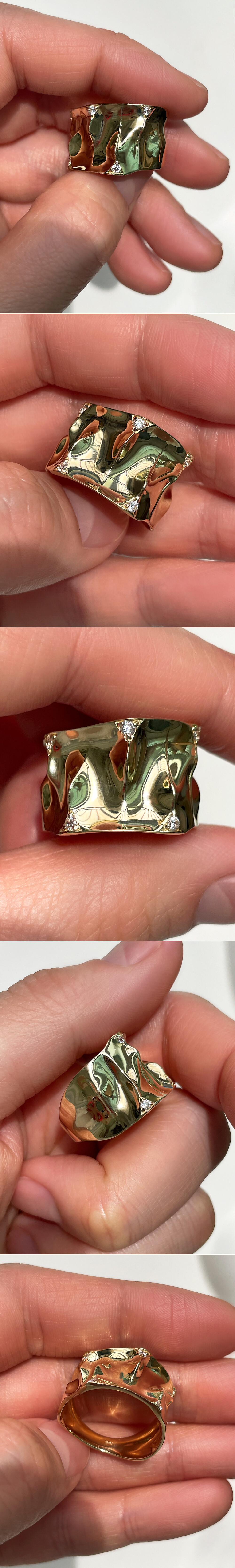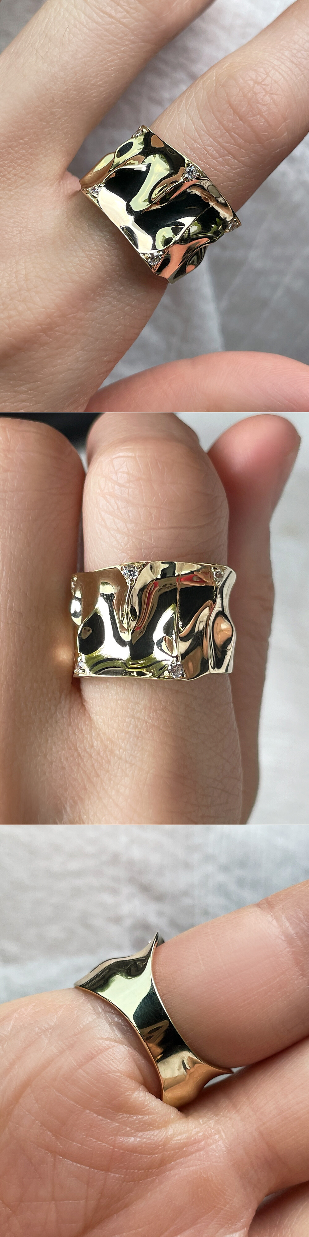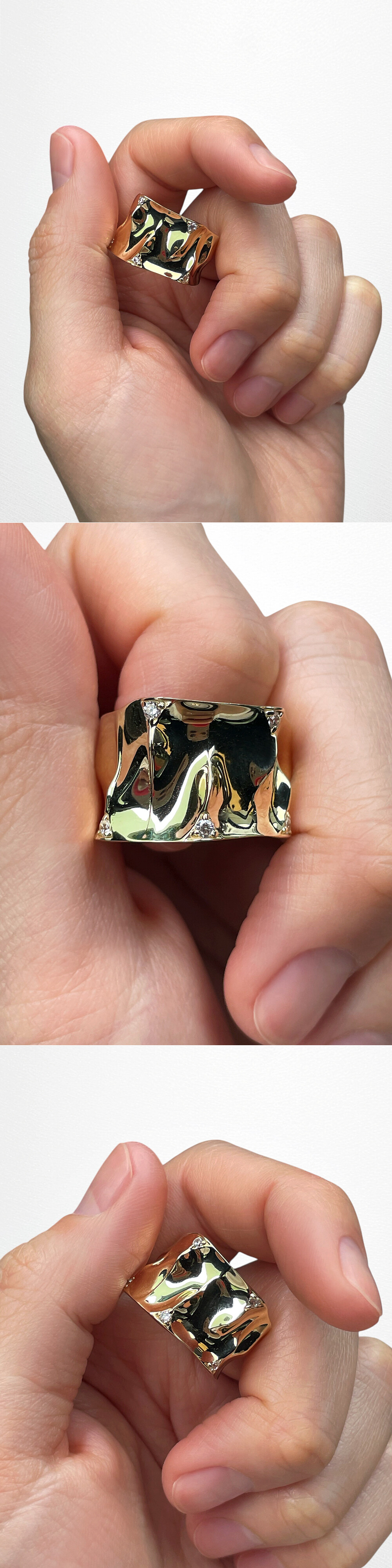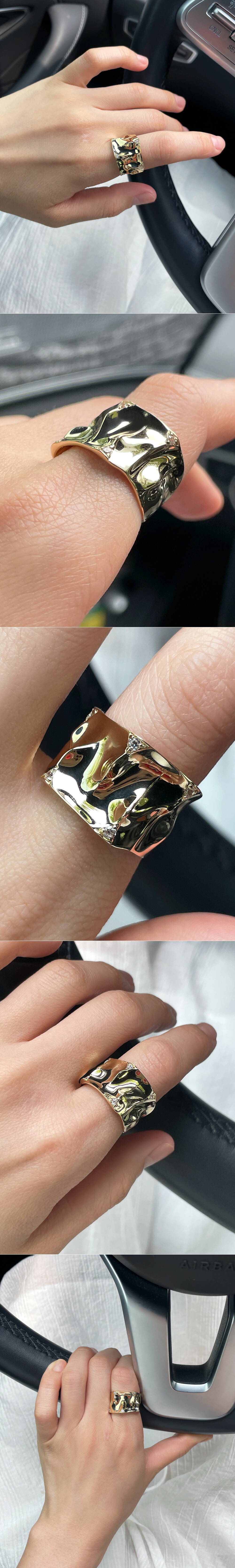 빛의 왜곡과 반사로 인해 고급스럽고 몽환적인 느낌을 연출해 주는 독특한 느낌의 반지입니다.