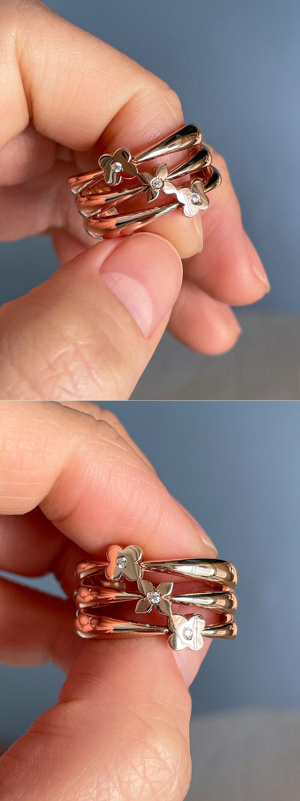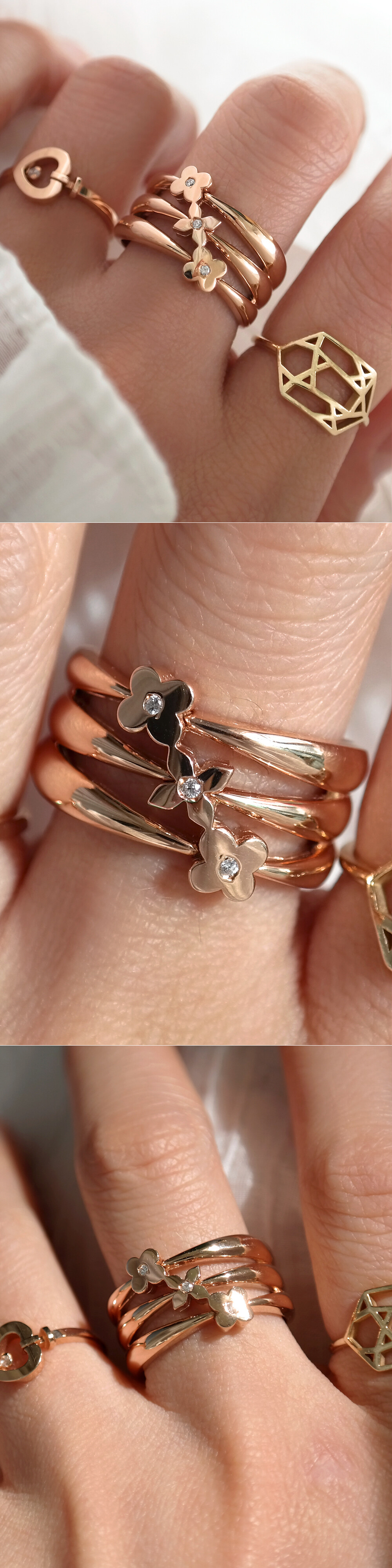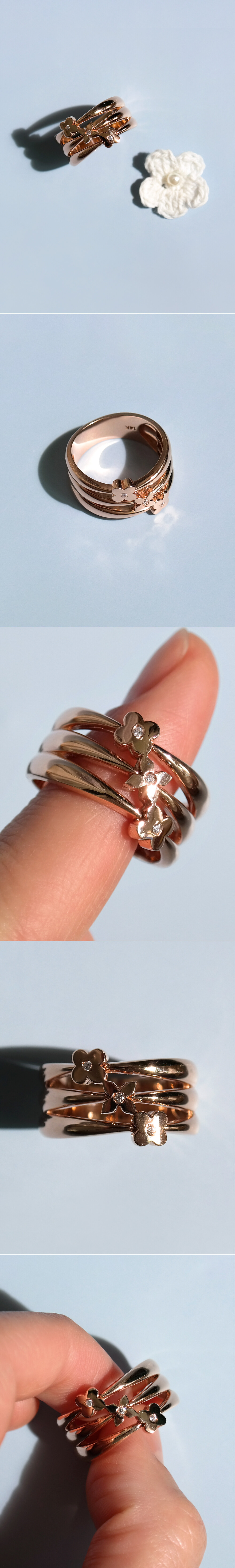 작은 플라워와 클로버 디테일이 귀엽고 유니크한 디자인으로 우아한 분위기를 연출해 줍니다. 연령대 상관없이 여성분들이 데일리로 착용하기 좋은 포인트 반지입니다.