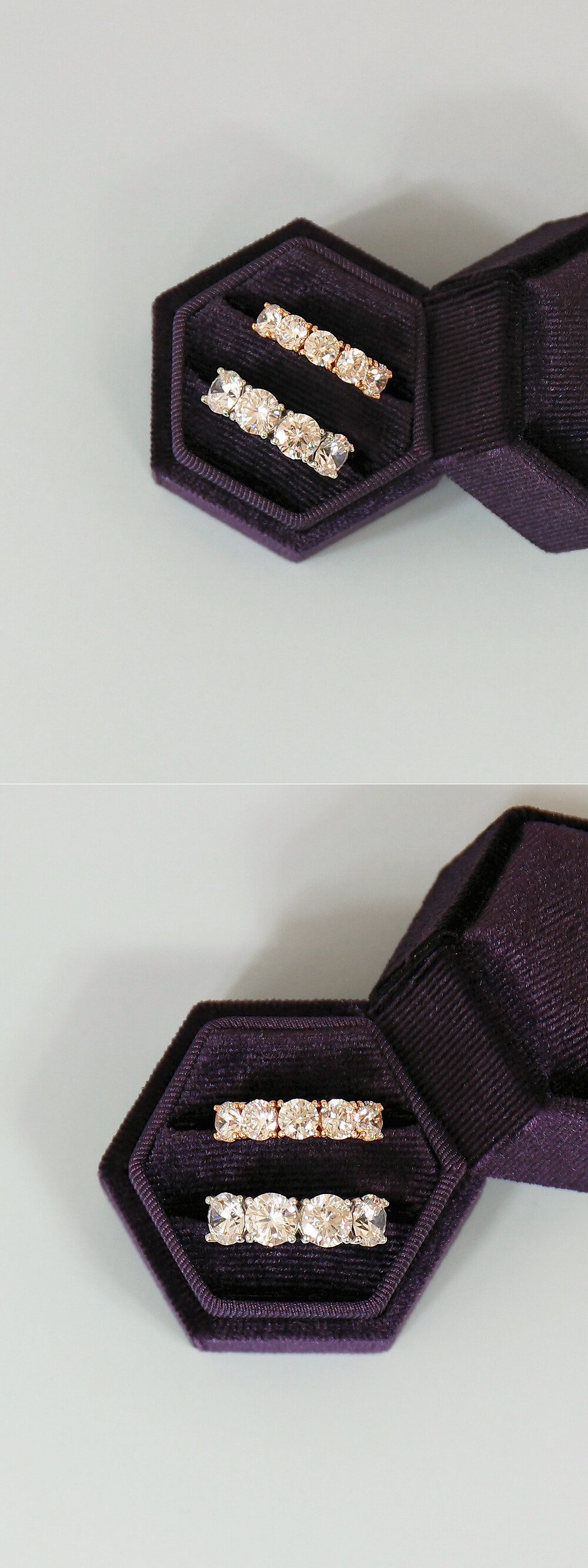심플하면서도 고급스러운 디자인으로 데일리 반지로 착용하기 좋으며, 0.5ct (5부) 사이즈의 스톤이 연결된 디자인으로 포인트 반지로도 손색이 없습니다. 골드, 옐로우, 핑크, 화이트 다섯 가지 색상 중 취향에 맞게 선택하여 다른 반지와 함께 레이어드하여 멋스러운 분위기를 연출해 보세요.