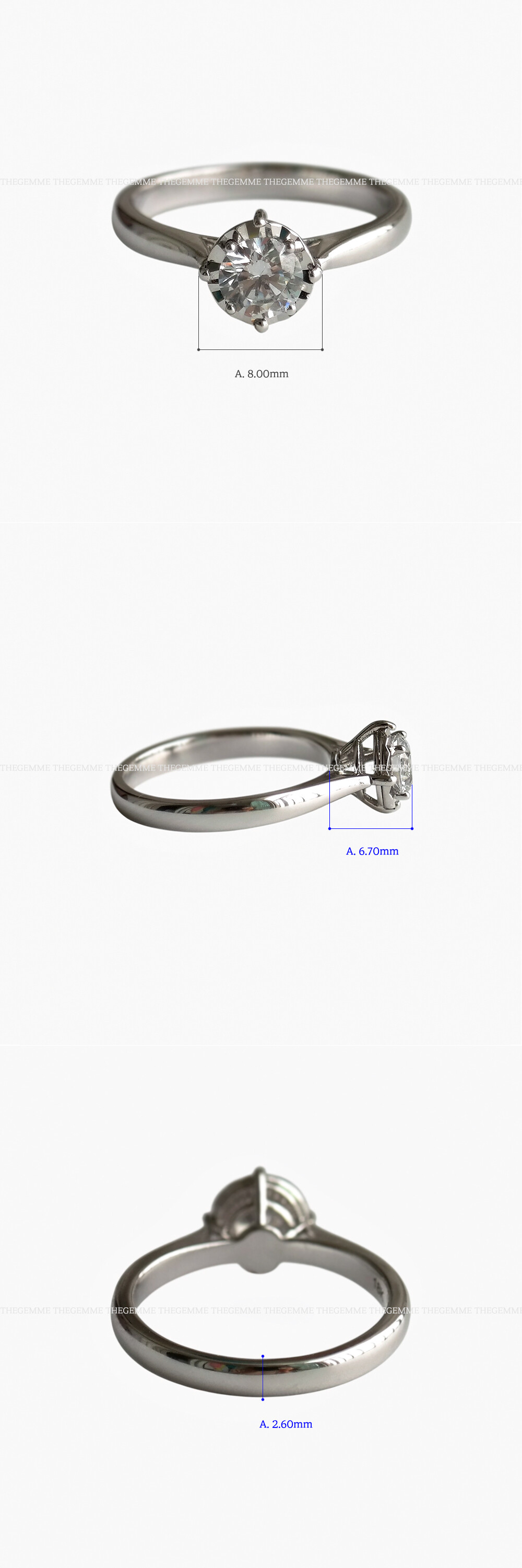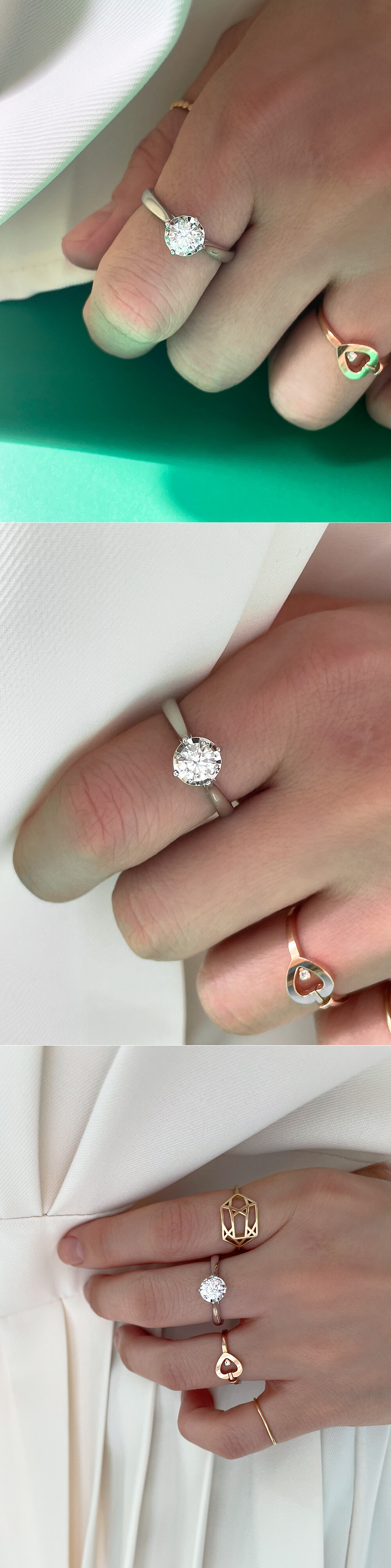 0.5ct (5부) 사이즈의 스톤이 세팅된 반지로 다른 반지와 함께 착용하기에도 좋고, 메인 반지로도 손색이 없습니다. 클래식하면서도 우아한 느낌을 주는 골드부터 세련된 화이트, 사랑스러운 로즈 골드까지 다양한 색상 선택이 가능하여 취향에 따라 다양한 분위기를 연출할 수 있습니다.
