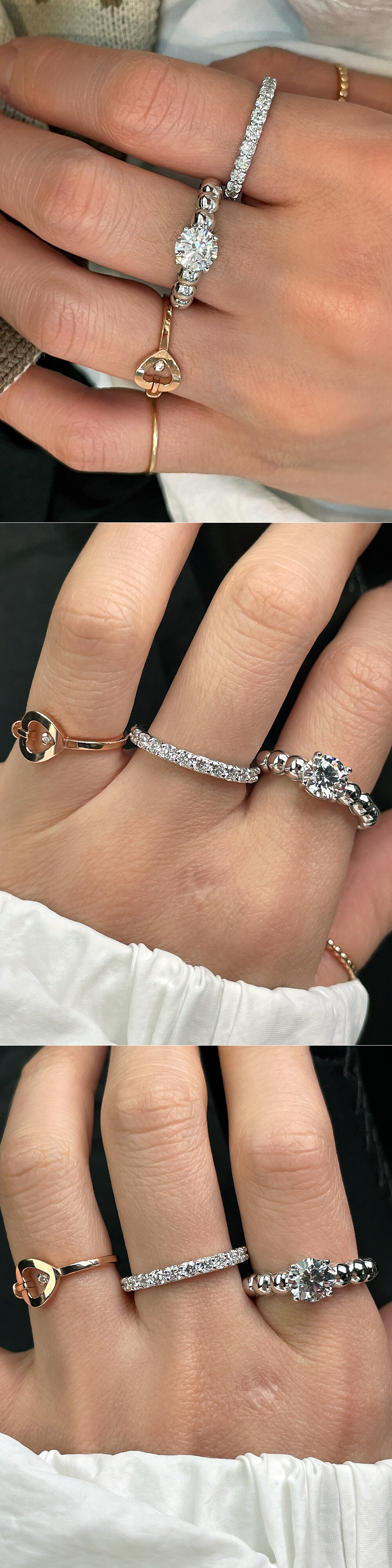 부드러움과 화려함을 동시에 담아낸 디자인으로, 어떤 룩에도 잘 어울려 데일리 반지로 착용하기 좋습니다. 모임이나 특별한 자리에서는 화려하게, 일상생활에서는 심플하게 다양한 스타일로 연출해 보세요.
