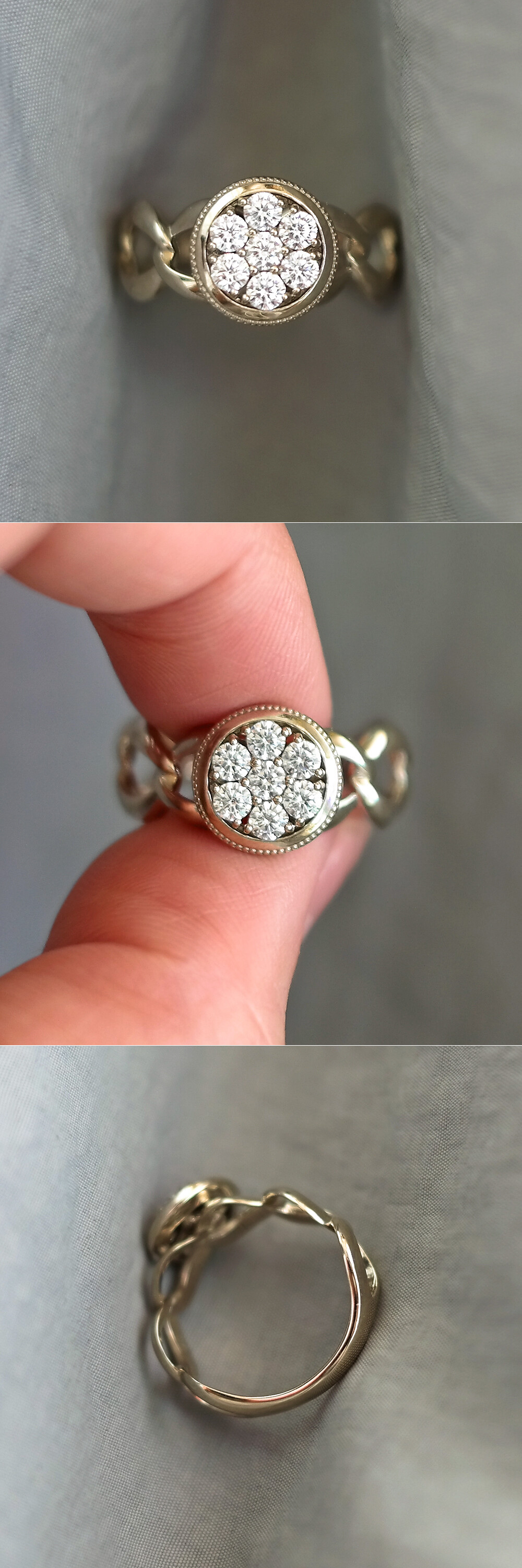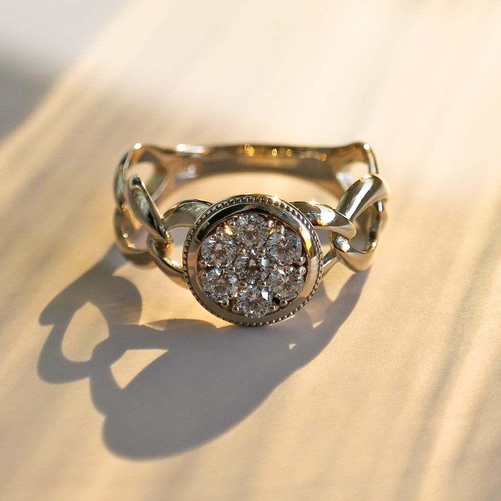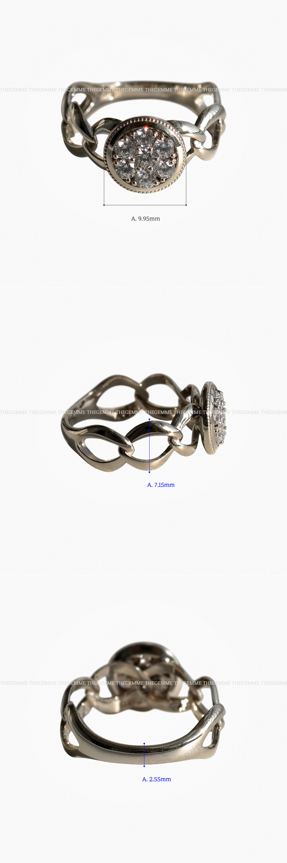 체인 밴드와 함께 유니크한 실루엣을 완성해 주는 링으로, 독특한 디자인이 시선을 사로잡아 나만의 개성을 돋보이게 해줍니다. 데일리 포인트 주얼리로도, 특별한 날의 포인트로도 잘 어울리는 디자인입니다.