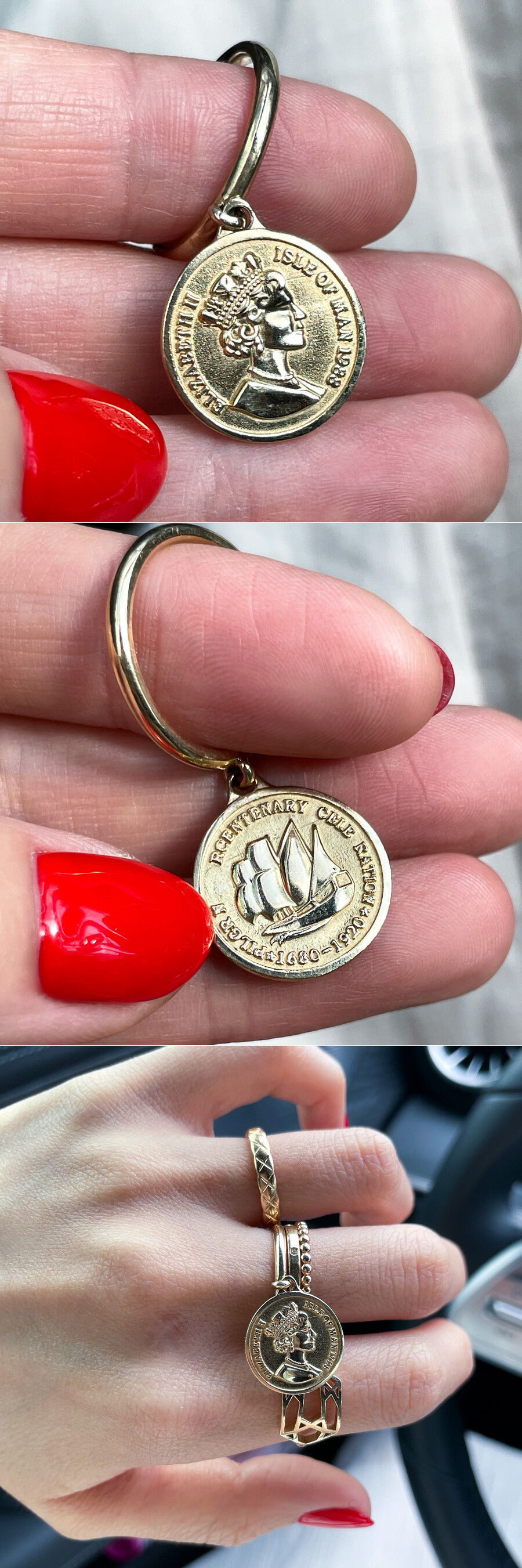 엘리자베스 여왕 주화 코인 딸랑이 반지 (코인지름 1.5CM)